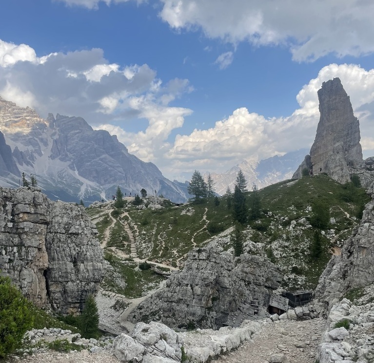 An unforgettable hike that combines the stunning natural beauty of the Dolomites with the moving history of World War I. The trek begins at Rifugio Scoiattoli, which can be reached either on foot or by chairlift . Here, a breathtaking view opens up: the iconic 5 Torri rise majestically, framed by the surrounding peaks of Tofana di Rozes, Lagazuoi, and Nuvolau. The route leads into the Open-Air Museum of the Great War, a unique trail among restored trenches, military outposts, and tunnels carved into the rock – silent witnesses to the harsh conditions endured by Italian and Austro-Hungarian soldiers during the high-altitude battles of the First World War in 1915-1918.