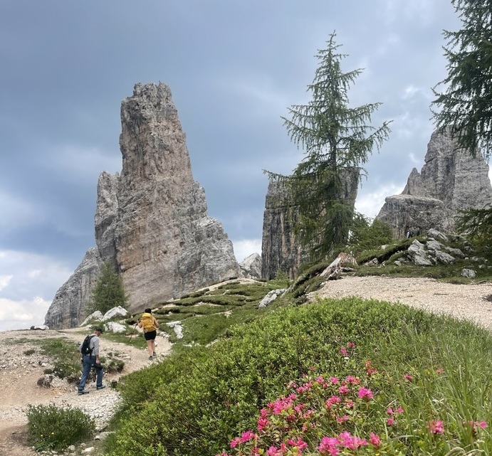 The circular path around the 5 Torri is suitable for families as well, and during the summer season, it offers a wonderful display of endemic alpine flowers such as hairy rhododendrons, edelweiss, and Dolomite yarrow – delicate bursts of colours scattered across the high-mountain meadows.