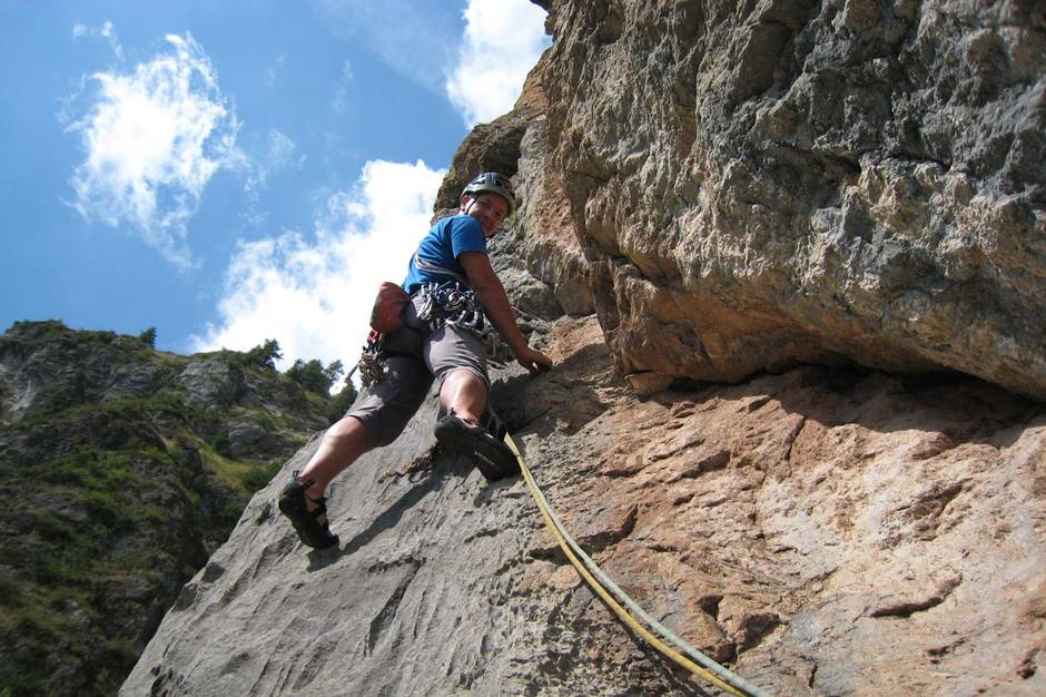 - Climbing techniques: advanced progression (slab climbing, dihedral, crack, traverse, roof...), progression on multi-pitch routes, placing the climbing protections, belay methods and devices, rope team mate rescue, abseiling...