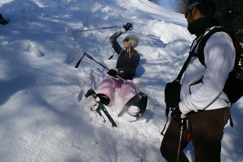 We return along fun slopes gently descending to the lodge, where we can taste its delicious cuisine and drink a good beer.