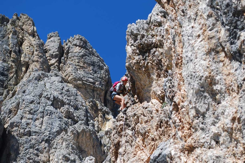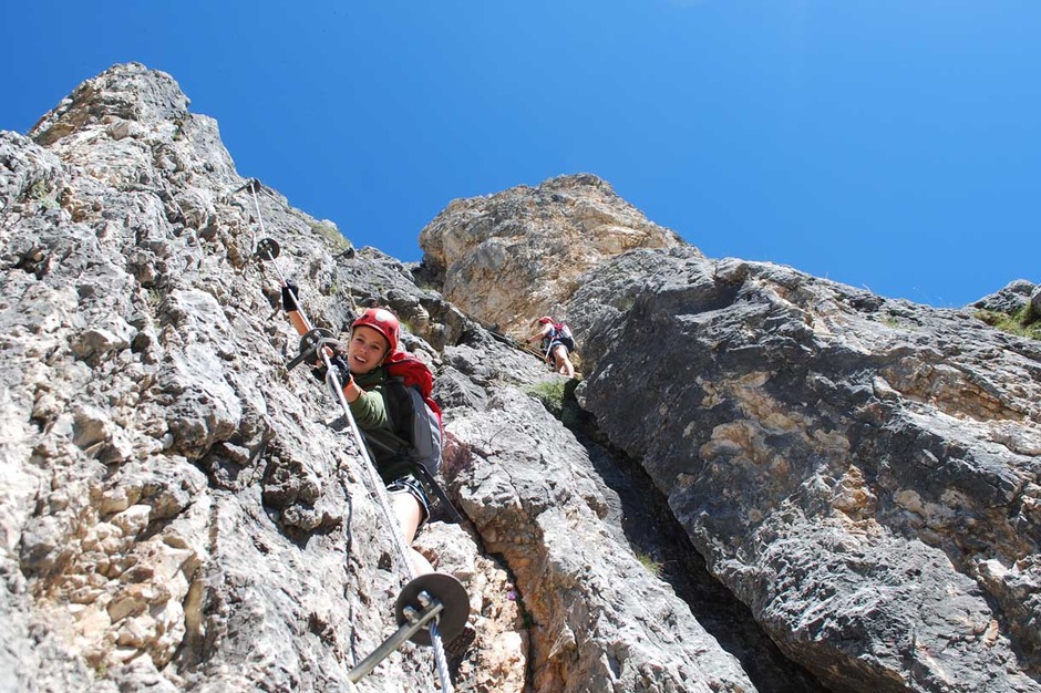 The time required to complete the ascent of Ferrata degli Alpini is approximately two hours and a half, while the total duration time of the whole excursion is four hours and a half.