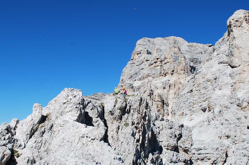 It is possible to link together the Via Ferrata Olivieri and the consecutive Via Ferrata Aglio: you will reach the summit of Tofana di Mezzo (3245 metres) through an amazing climbing path, which is one of the most challenging and beautiful itineraries of the area. Since it is a long and demanding itinerary that reaches up to a very high altitude, it should be undertaken only under good weather conditions by expert, well-trained climbers.