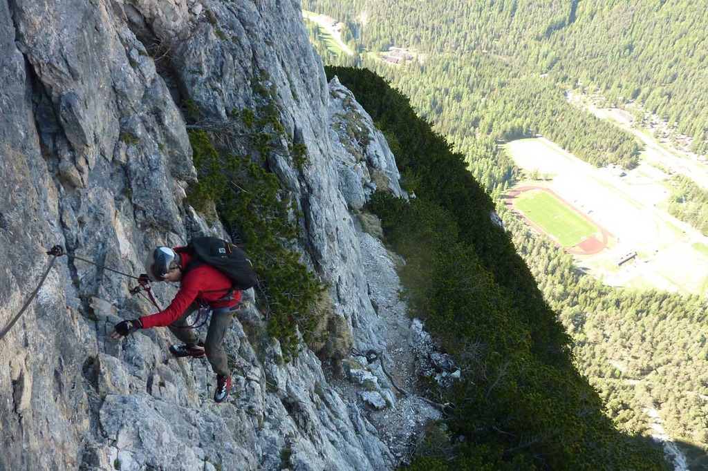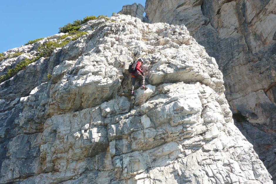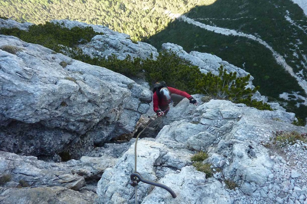 The Via Ferrata Strobel is a path of average difficulty, it stretches out mainly on ledges and wide rock faces and includes some weather-beaten but still completely safe pitches.