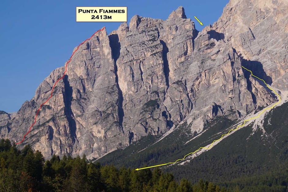 The itinerary starting point is Fiames and its first part is a steep trail among the mountain pines that leads hikers to the via ferrata. From the summit, you can go back descending along a trail (which in some parts is not very well traced) that reaches the Forcella Pomagagnon, from where a long but enjoyable scree slope will lead you to the foot of the cliff face and then to the excursion starting point.