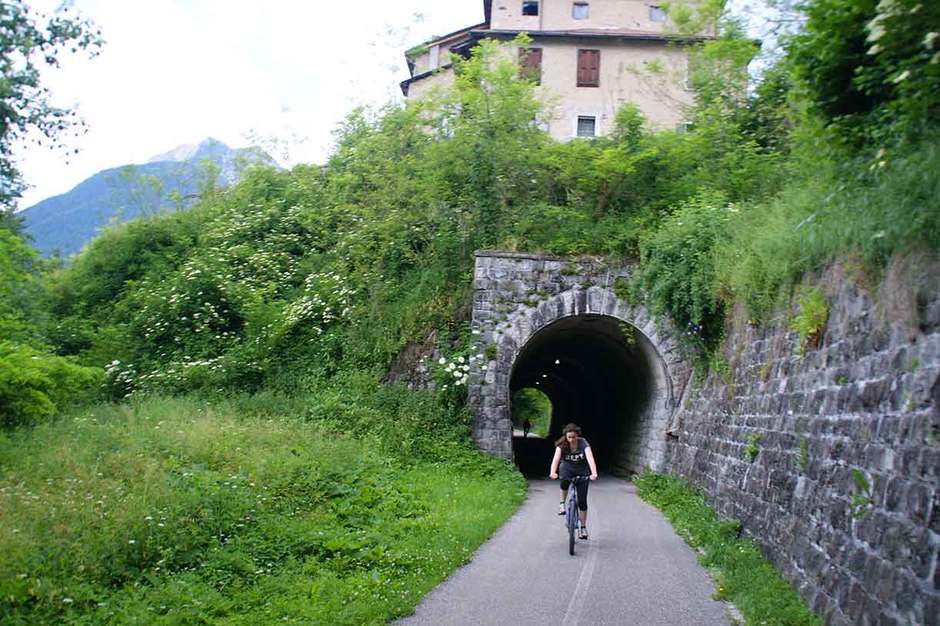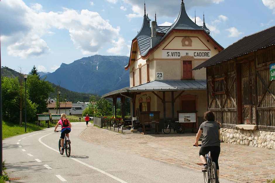 From the station in Cortina we take the old Dolomitic train track that runs south through the towns located in the Boite Valley.