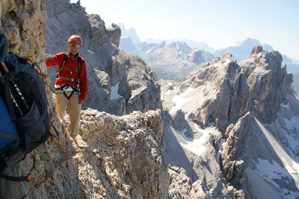 The Cengia Veronesi is well equipped with protections on all of the runouts and on the most difficult points, even so, it is recommended to keep a high focus and proceed cautiously.