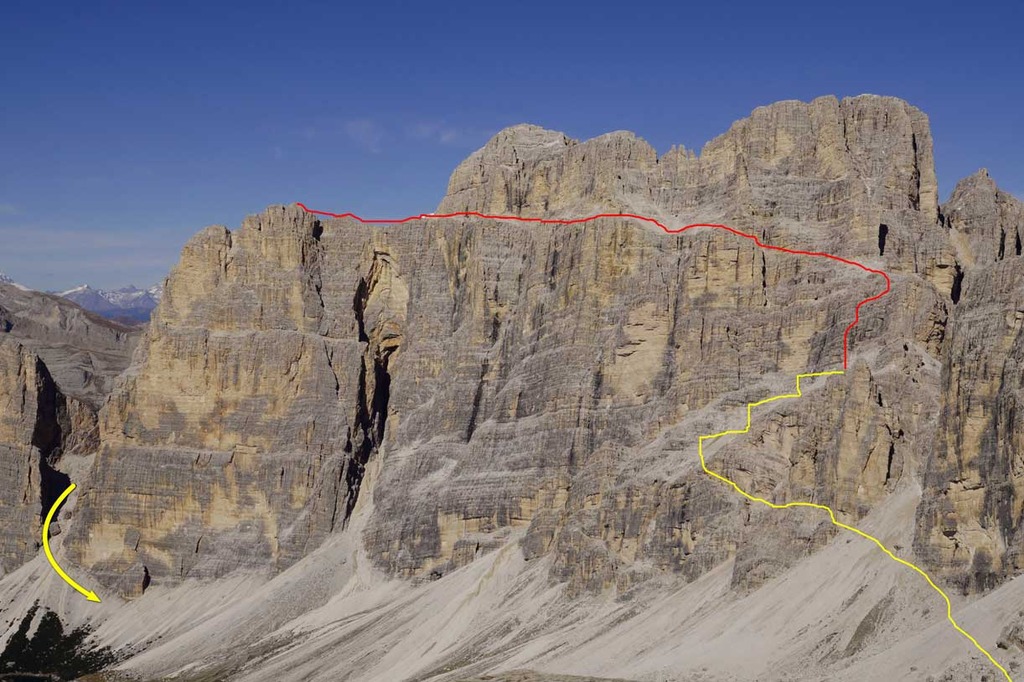 There are two possible itineraries for reaching the Cengia Veronesi ledge: