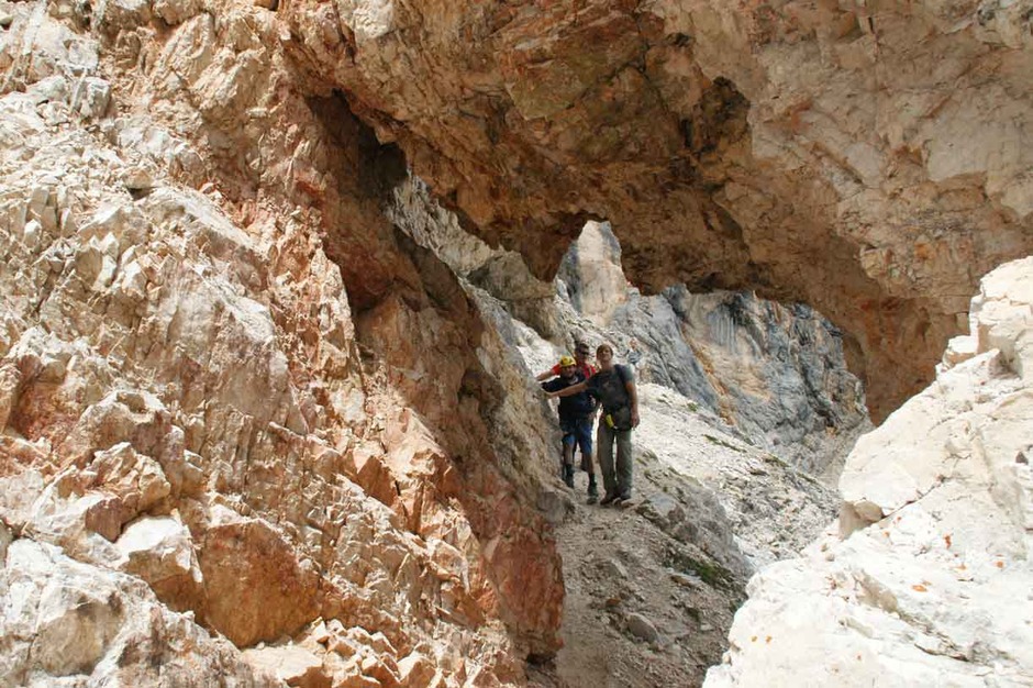 - the second one is easier: it follows the pebbly trail that leads up to the Forcella Quaire saddle and then turns left on a wide, sloping ledge.
