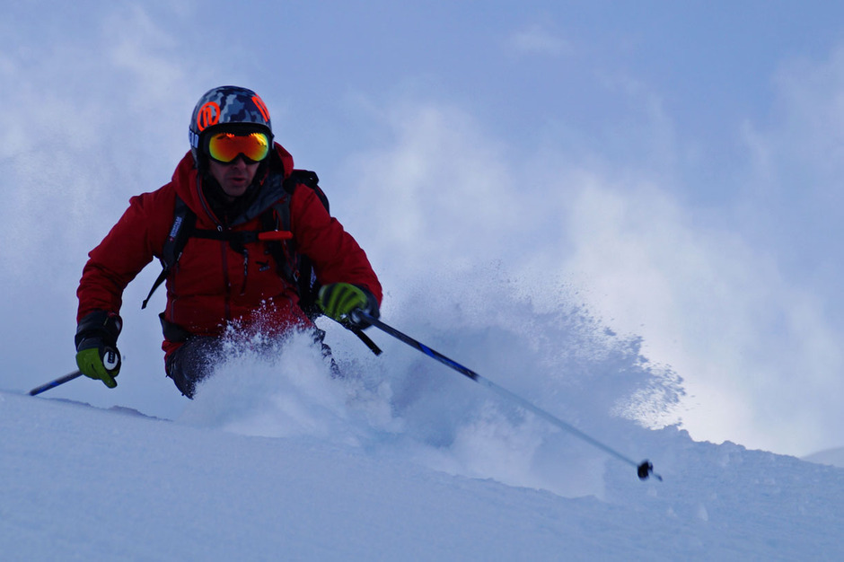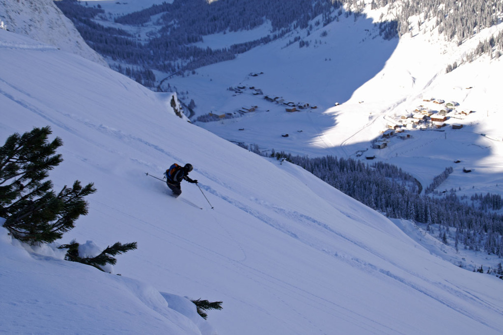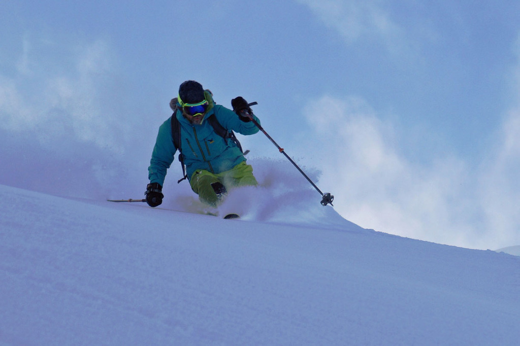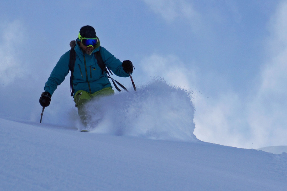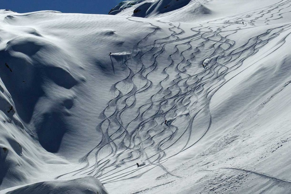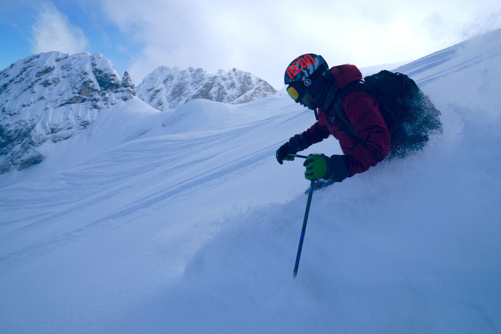 The excursion will end with a last off-piste skiing slope, reachable with a 10 minutes walk: a narrow couloir that ends up in a wide but steep couloir.
