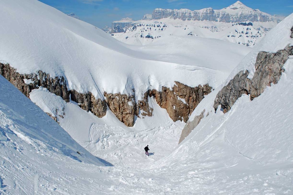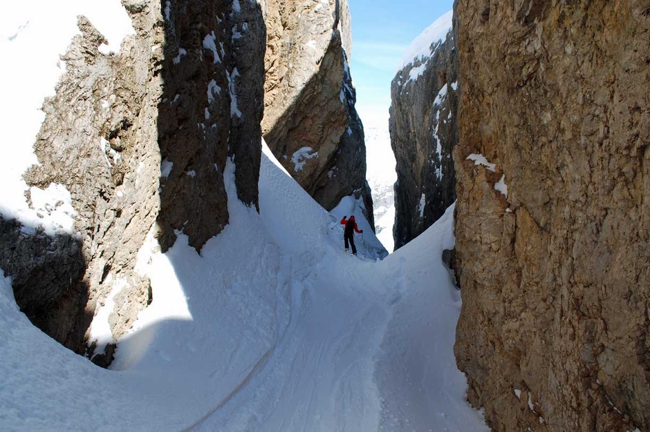 Along the Marmolada glacier, in a breath-taking natural environment, there is plenty of possible itineraries to choose from. Our guides will show you the three best off-piste skiing itineraries, that you absolutely cannot miss.