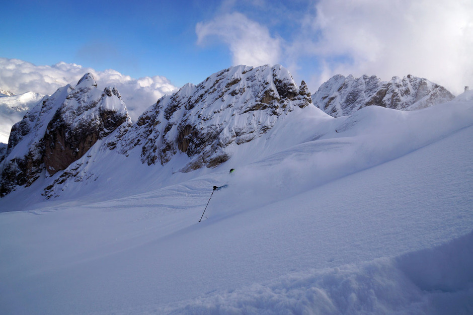 The Dolomiti SkiRock Mountain Guides will lead you to discover the amazing Marmolada off-piste skiing slopes. You will live amazing, exciting day skiing always in complete safety on numerous different slopes, where the most experienced skiers can get to an overall elevation loss of more than 5500 metres...