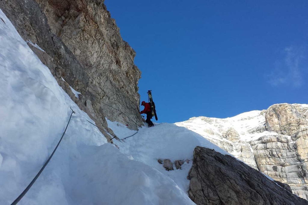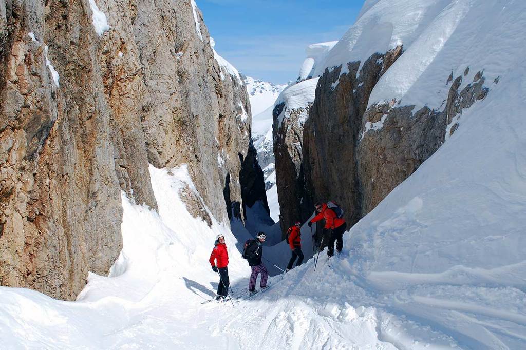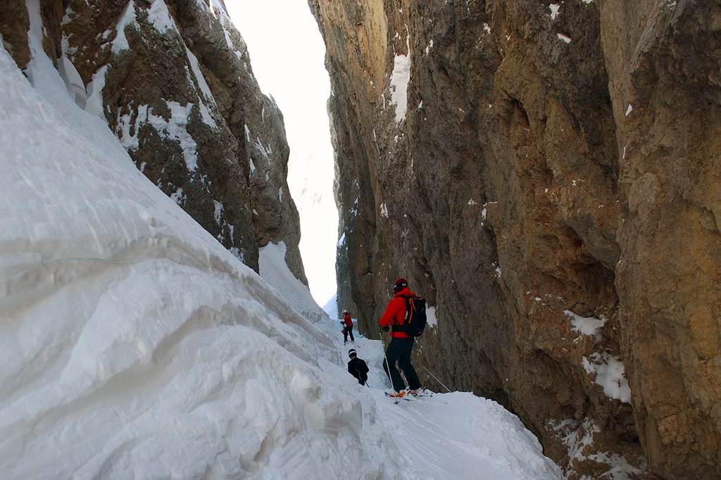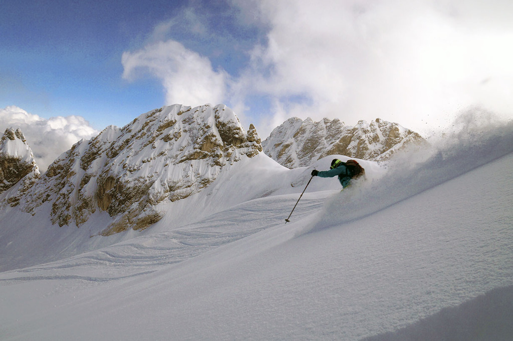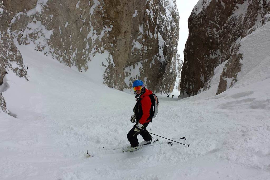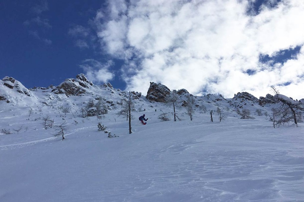 During the three freeride days, based on snow and weather conditions and slope type, the Dolomiti SkiRock Alpine Guides will choose the safest trails looking for the best snow conditions and the most satisfactory runs, giving also appropriate directions on off-piste ski techniques, in relation to technical level and ability of riders.