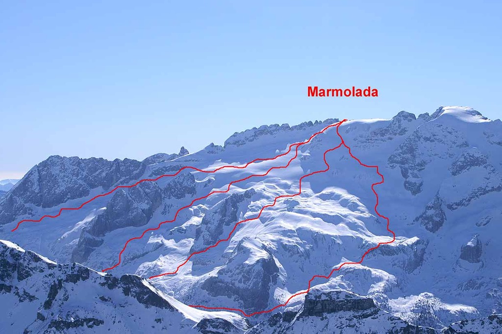Off-piste tour in the Dolomites, Day Three: Marmolada ski area