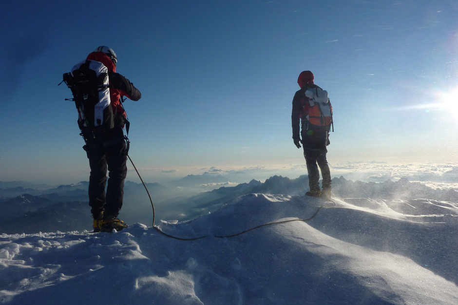 You will leave the mountain hut at dawn and cross a first gravelly slope that leads to the rocky Hintergrat crest. The climbing terrain is both ice and rocks, the difficulty level of this route is II and III grade, with one IV grade pitch. This climbing route will lead you to the summit of mount Ortler (3905 metres). Then descend on the normal route along the snowy north-west peak, across crevasses and some climbing pitches equipped with fixed steel cables, to reach the hut Rifugio Payer (3029 metres).
