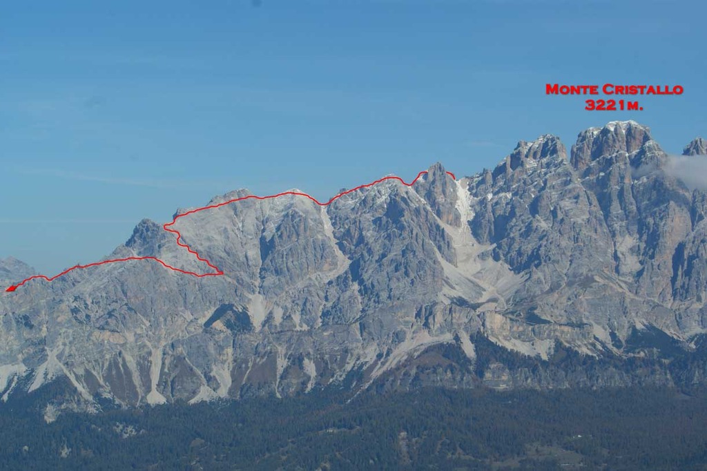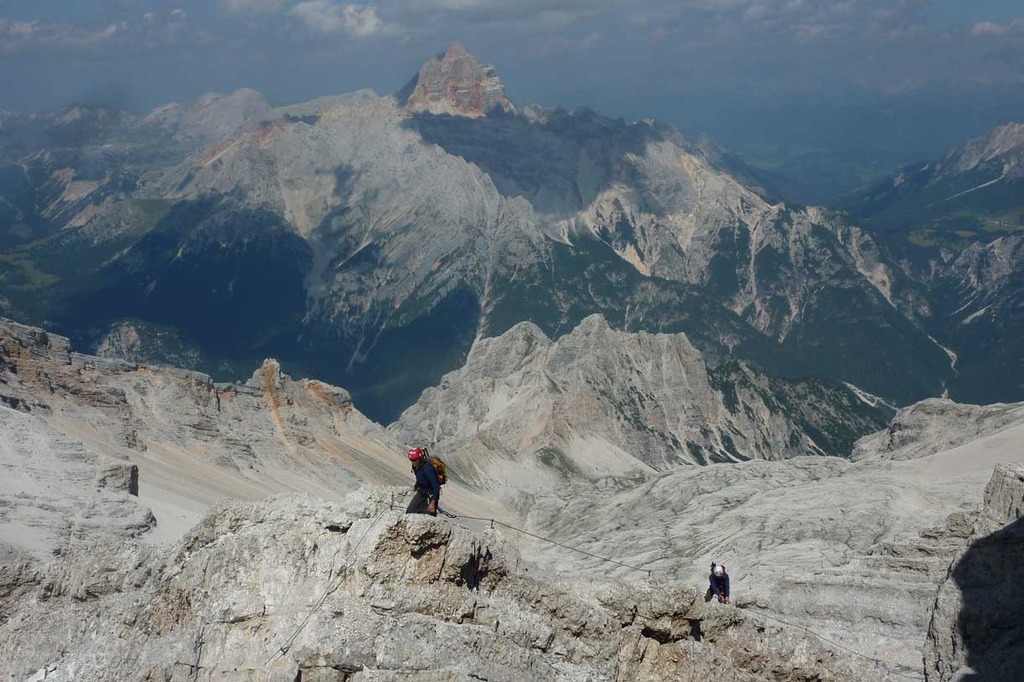 The Sentiero Ferrato Ivano Dibona is mostly a descending path without any particular technical difficulty. It stretches along the crest line from Forcella Staunies of Monte Cristallo to reach Ospitale, passing various peaks: Cresta Bianca, Padeon, Vecio del Forame, Forame de Inze.