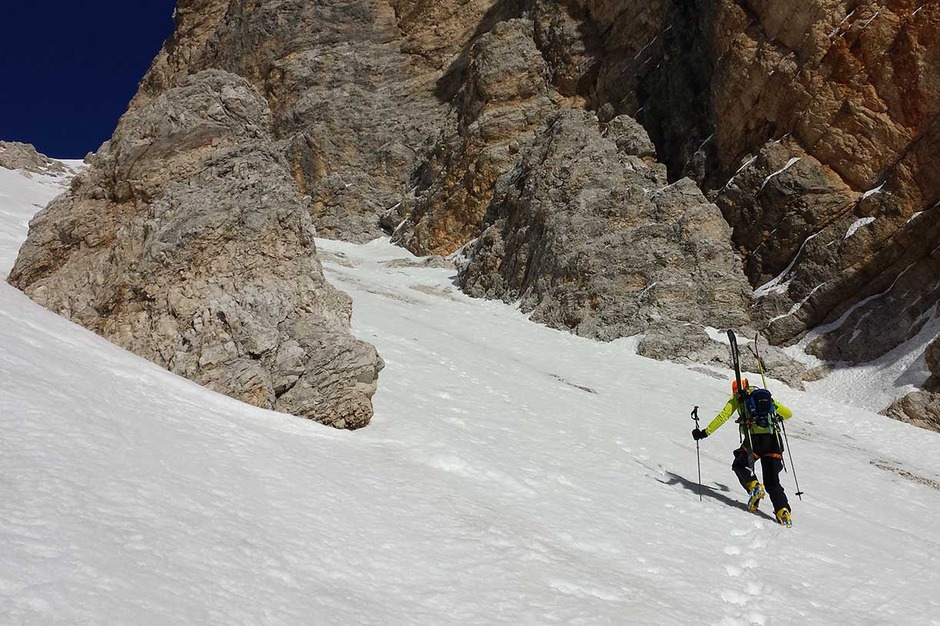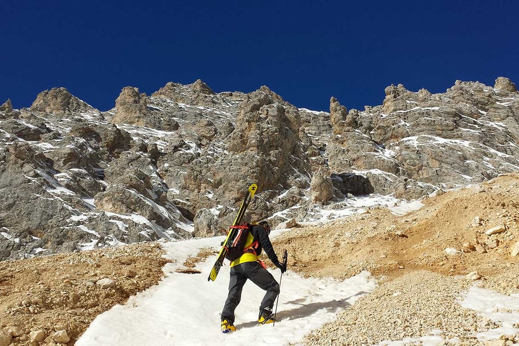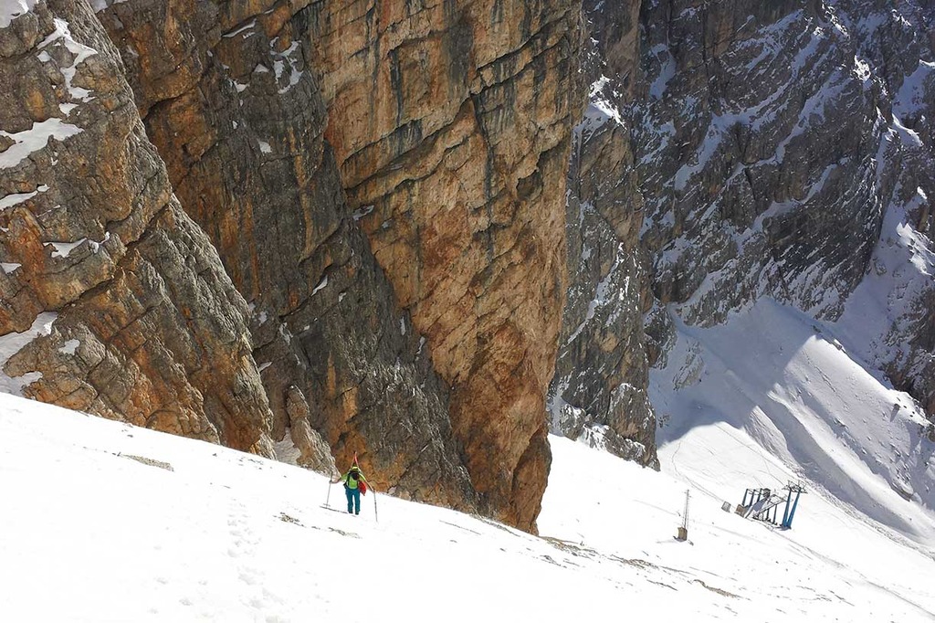 Generally, the ski mountaineering excursion to the Cristallino d'Ampezzo is tackled starting from Rio Gere, where you can take the chairlift to Son Forca.