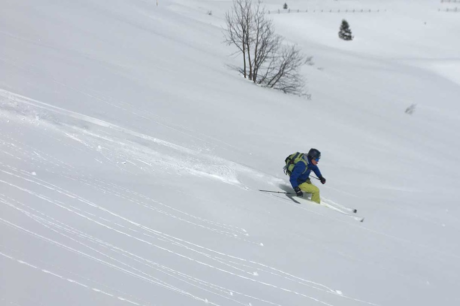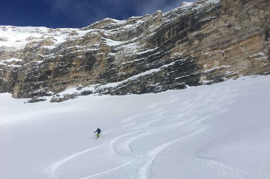 By Lagazuoi cable car we reach the ski run descending towards Val Parola. After leaving the regular slope, we go off-piste to the Lagazuoi Alp, gently descending just below the Forcella del Lago.