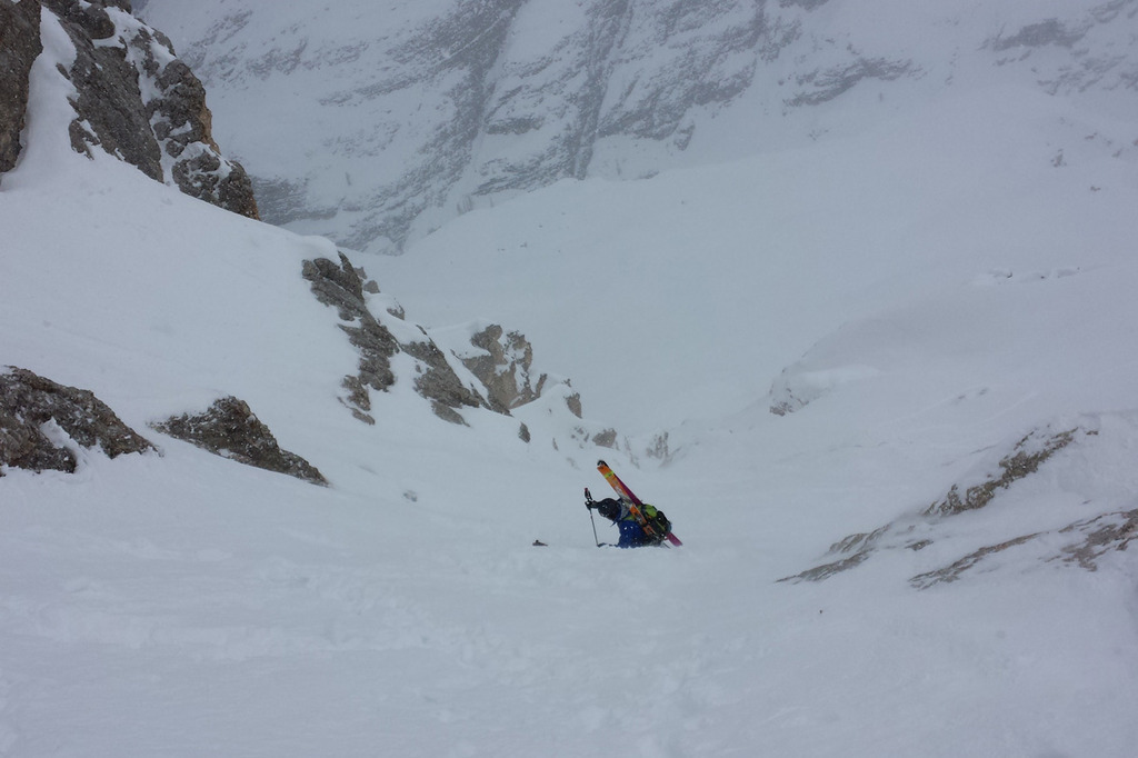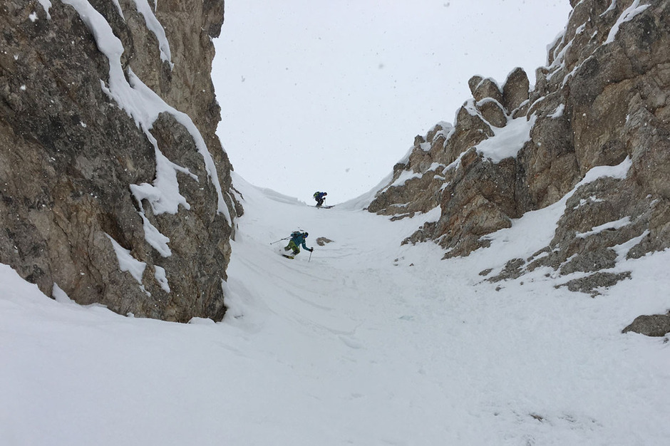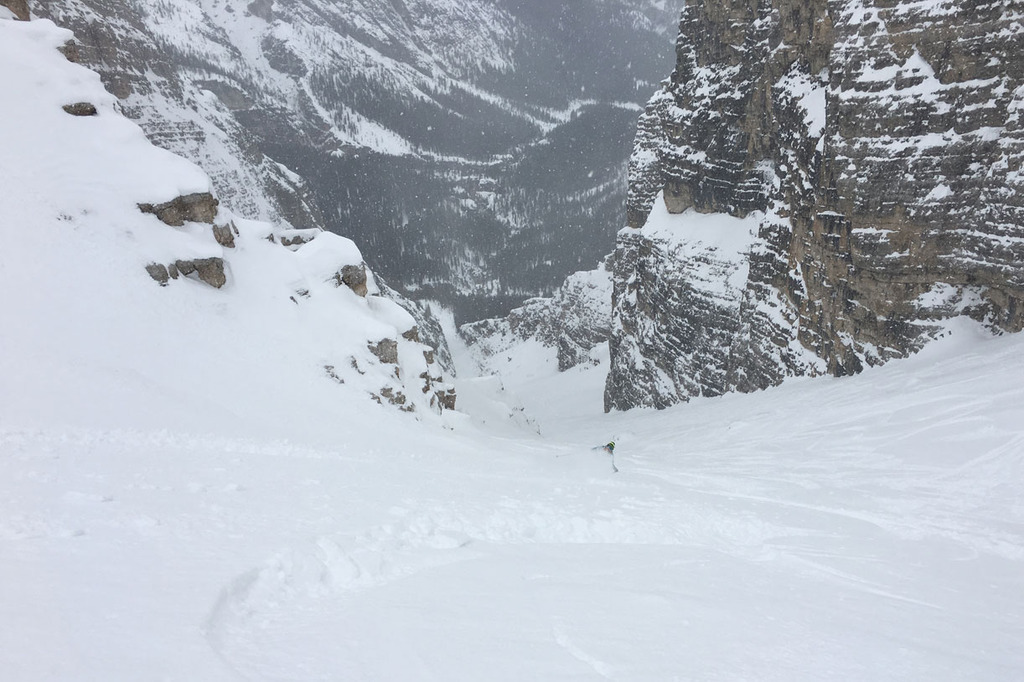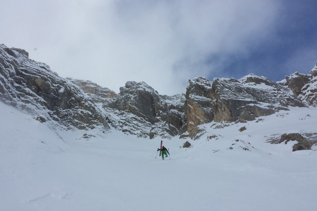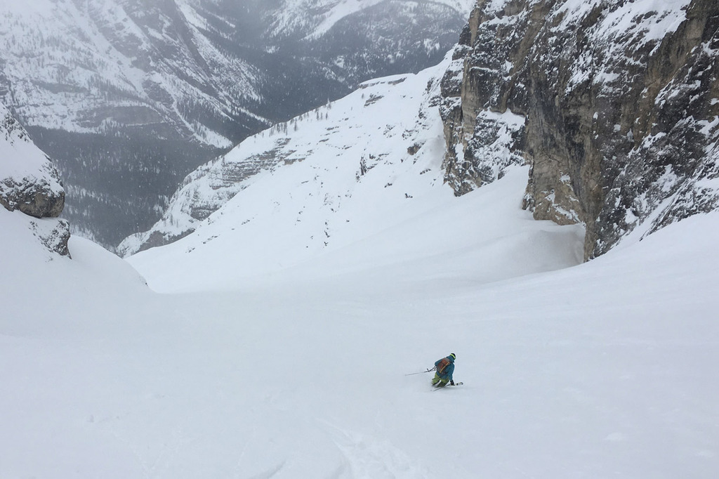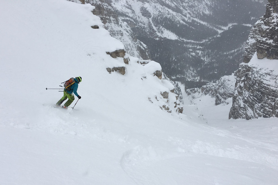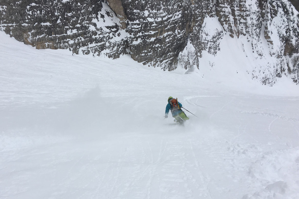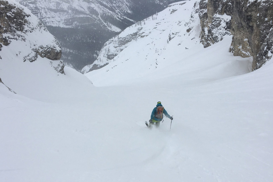 From there, the off-piste skiing descent begins: you will ski down Vallon Formenton, in majestic amphiteatres created by the surrounding peaks and along wide valleys that descend towards North to reach the cliffs of Val Travenanzes.