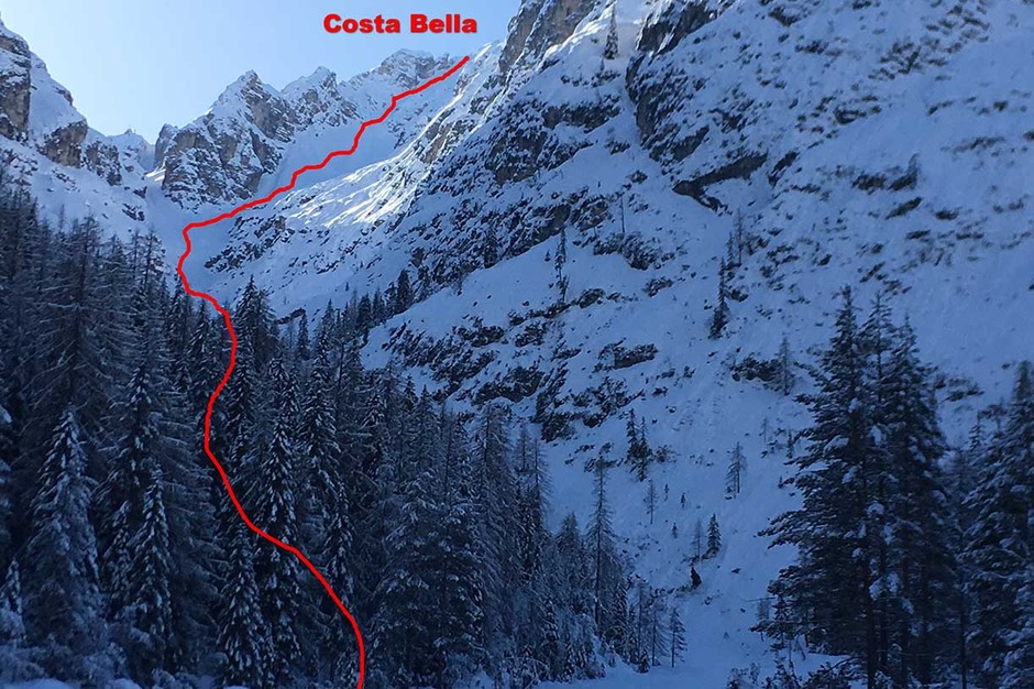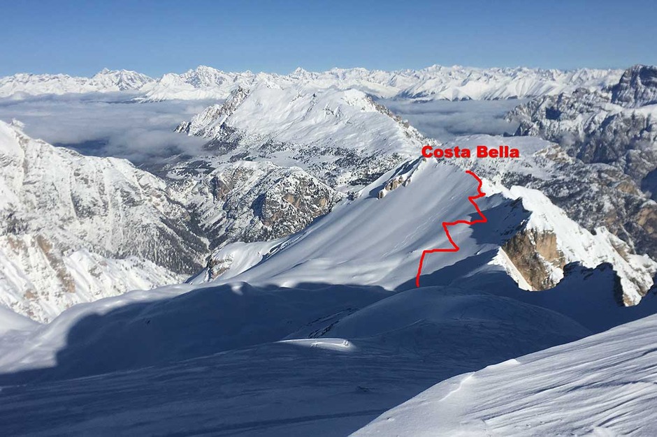 Technical information on the ski mountaineering excursion to the Costabella Crest in Monte Cristallo.