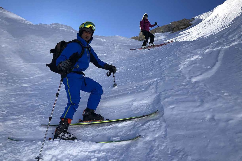 The ski mountaineering excursion to Val Setus is surely one of the best ski runs in the entire Sella Range. At first it unfolds along a wide and open valley, continuing inside a narrow and steep gully taking strait down to Colfosco and its ski runs. This excursion is recommended to excellent skiers.