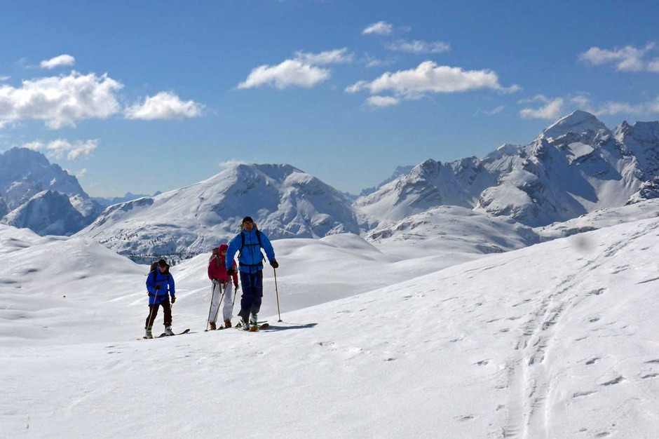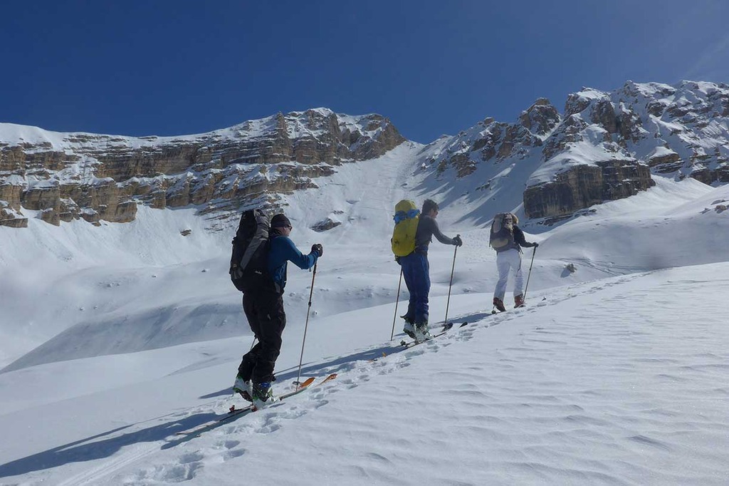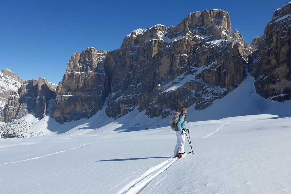 Dolomiti SkiRock offers a weekend of ski mountaineering in the Dolomites at Fanes Alp, in the Fanes-Sennes-Braies Natural Park, inclusive of two pleasant and interesting itineraries for ski mountaineering in the mountains surrounding the Rifugio Fanes, where we are going to spend one night.