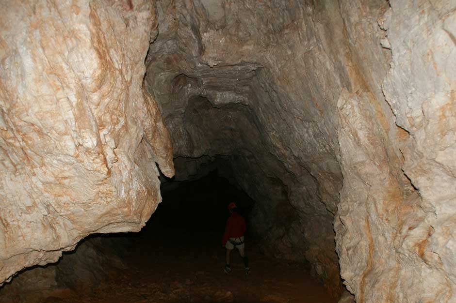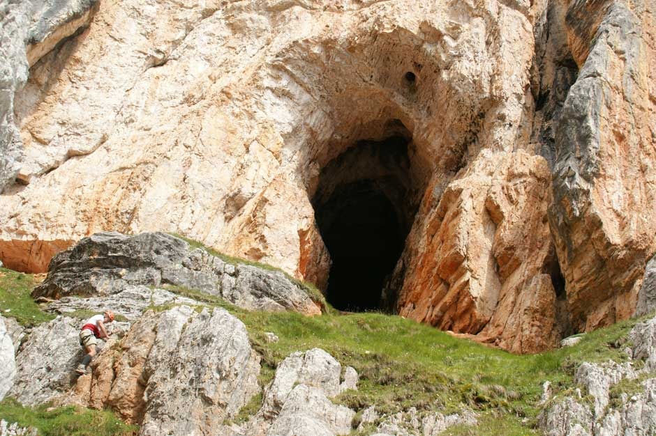 To enter the cave it is necessary to walk on a ledge, which is well equipped with a steel cable and some steps. This path has some weather-beaten parts, but they are not technically challenging nor dangerous.