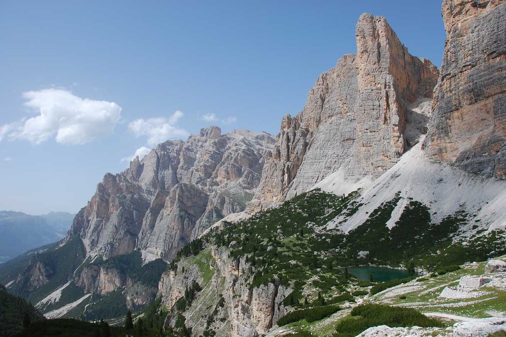 From Rifugio Fondovalle we will head to Rifugio Comici (2224 metres), then walk around the peaks of Crode Fiscaline to reach the hut Rifugio Pian di Cengia (2528 metres), from where the panoramic view is absolutely stunning, where we will stay overnight.