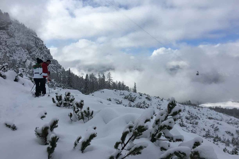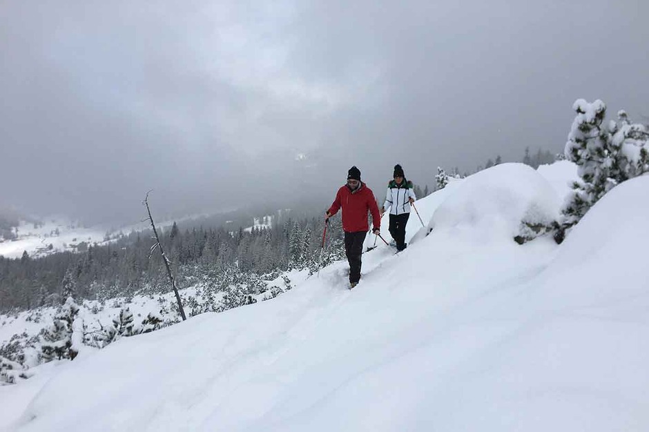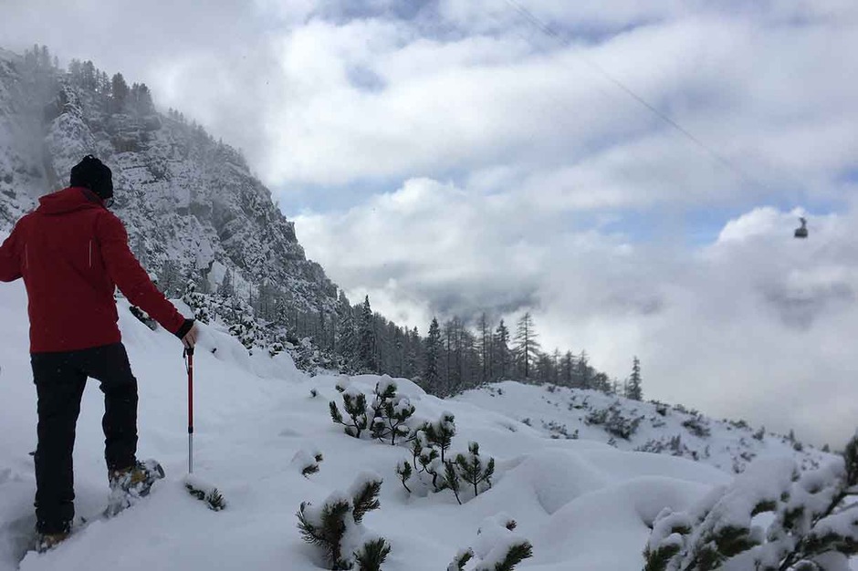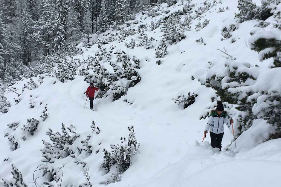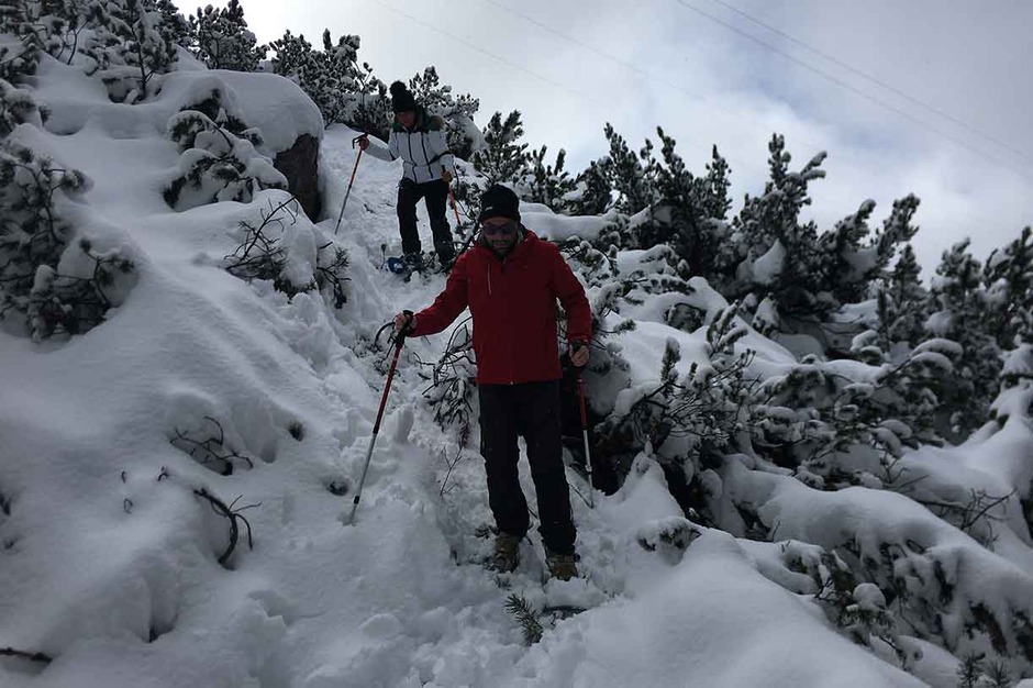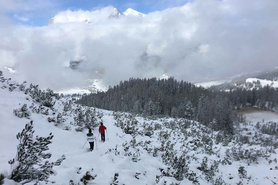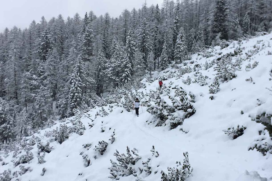 Once we reach Mandres we can climb down the valley by cable car or keep on going on snowshoes on trail #220 taking you to the Meneguto Farm, then return to Cortina.
