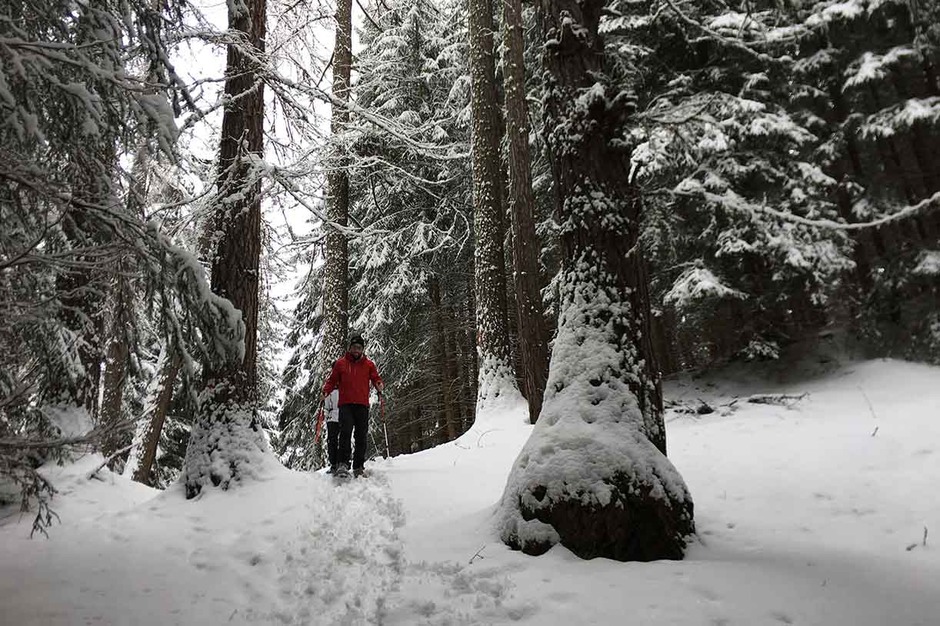Information on the trekking on snowshoes in the Cortina woods from Rio Gere to Fraina