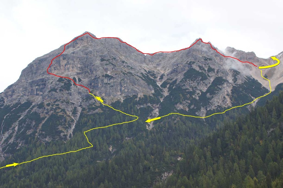 There is also an alternative descent itinerary, which is longer but easier than the above mentioned one. You will have to ascend up to the saddle Forcella Verde and then descend in the wide couloir Vallone di Pra del Vecio.