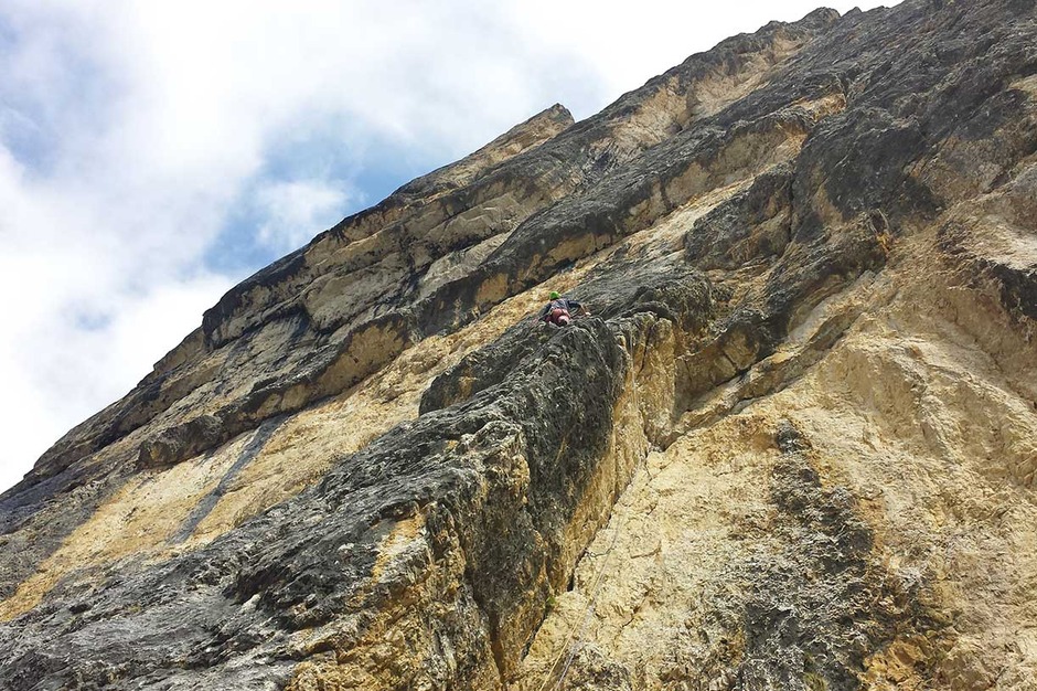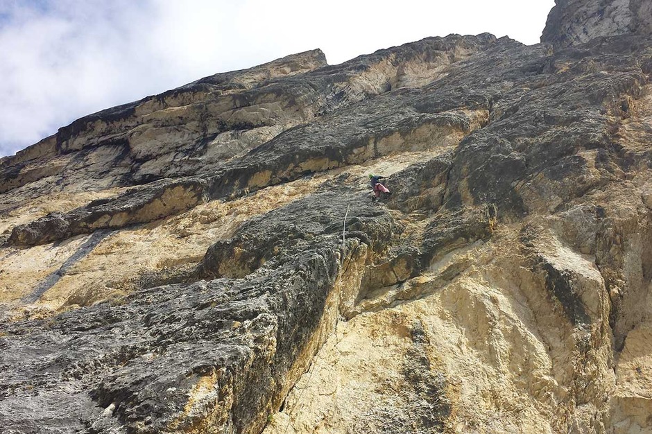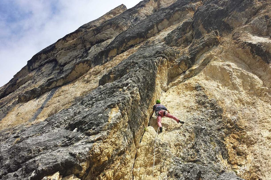 It is an eight leg climb with fifth and sixth difficulty degree, developing elegantly along the great cleft dividing the central section of the south wall of Piz Ciavazes from the section on the right side.