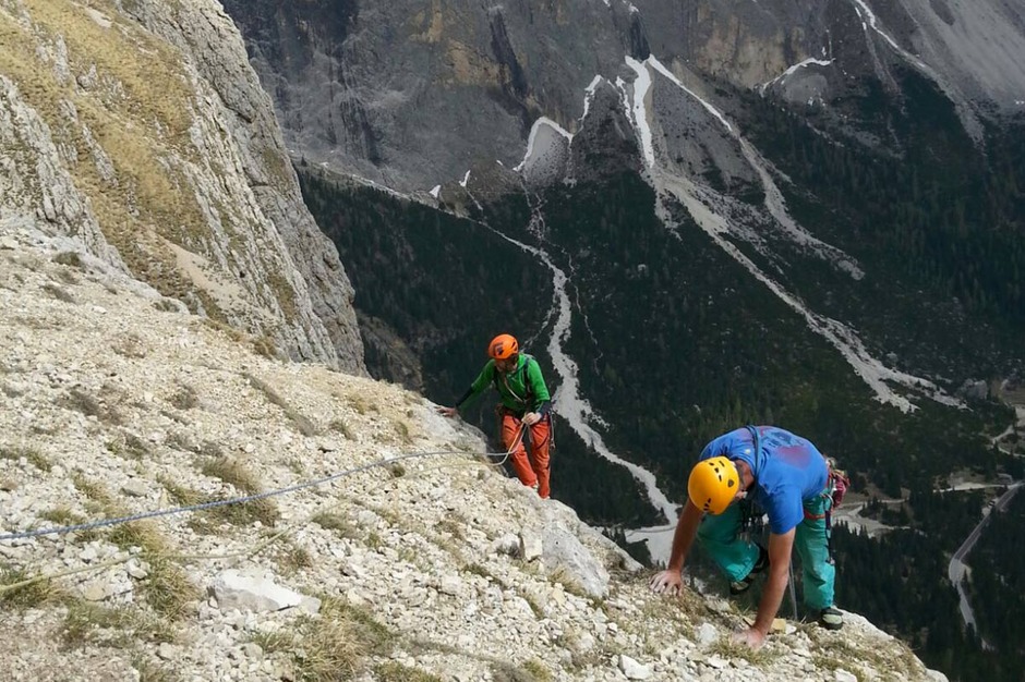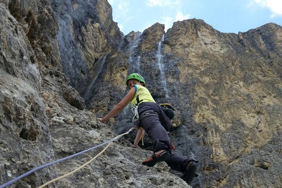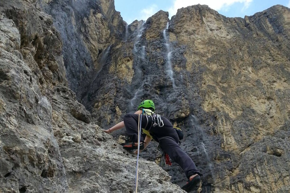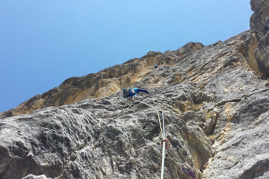 Contact usFor Andrea, Nicola and Silvia, Mario has chosen the beautiful and challenging Schubert route in the Sella Group to open the “with a bang” the climbing season in the Dolomites.