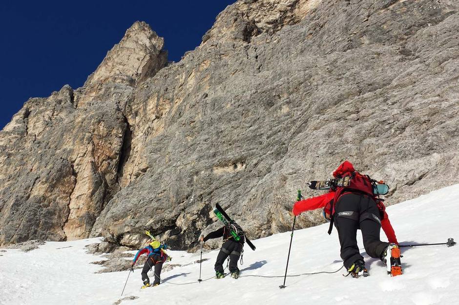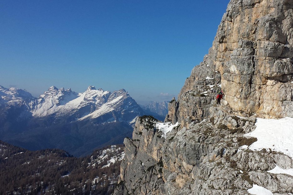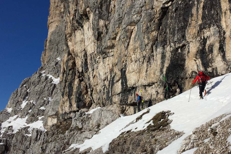 Contact usThe Dolomites mountaineering day to Mount Pelmo is long and challenging, but makes for a spectacular excursion with Giuseppe, Giacomo, Giorgio and Andrea.