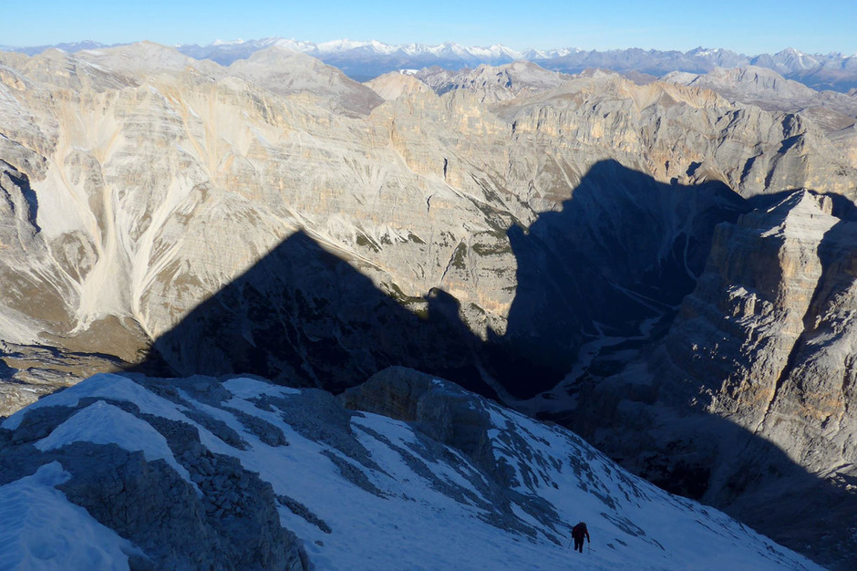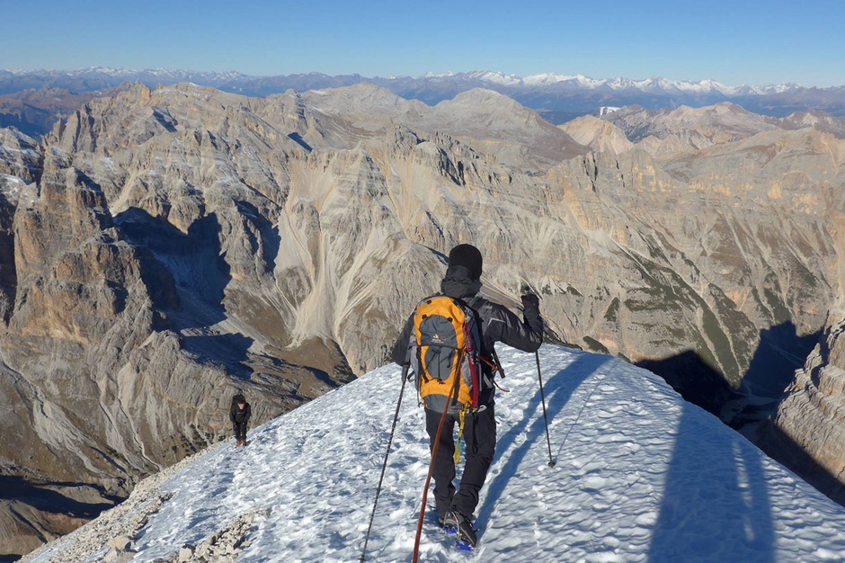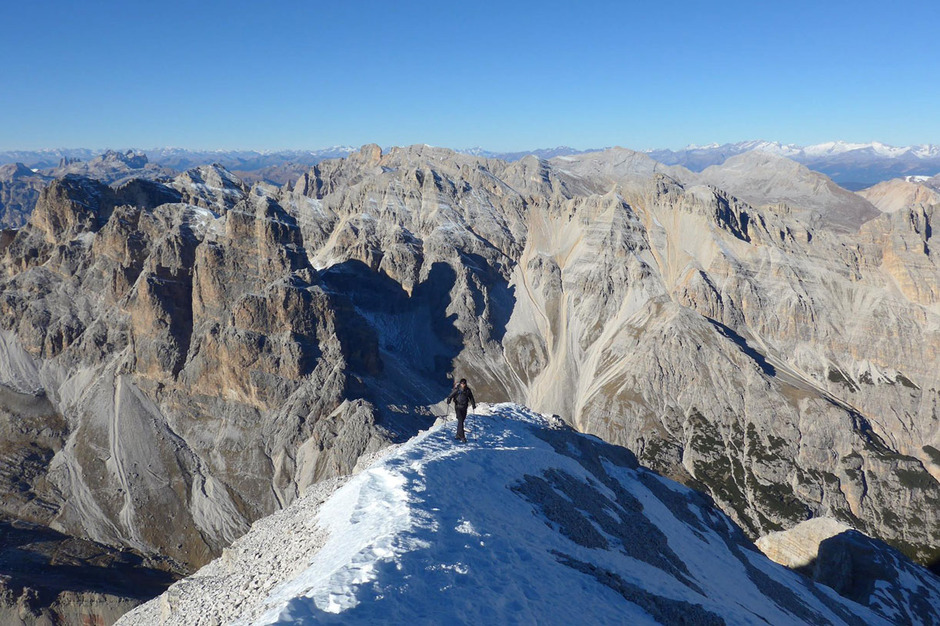 From the 3225 meters of altitude of the summit the view is amazing on all the Dolomites.