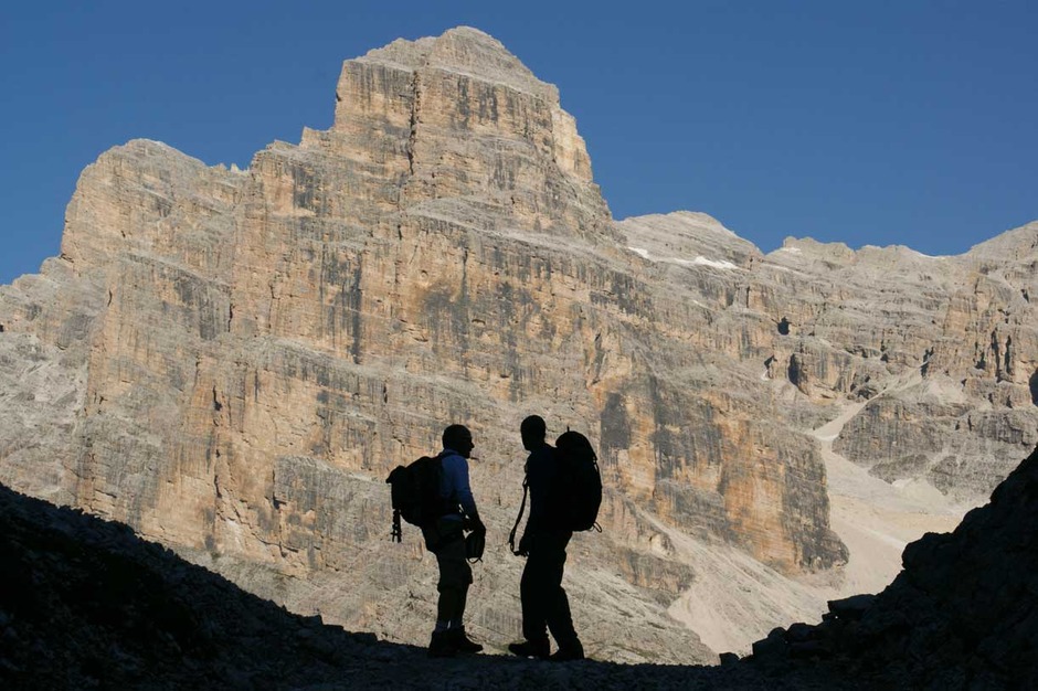 Contact usA pleasant excursion on a nice sunny day. Early in the morning, we left the mountain hut Rifugio Dibona and completed the tour around Tofana di Rozes ascending the Via Ferrata Scala del Meneghel, to reach finally the Rifugio Giussani.