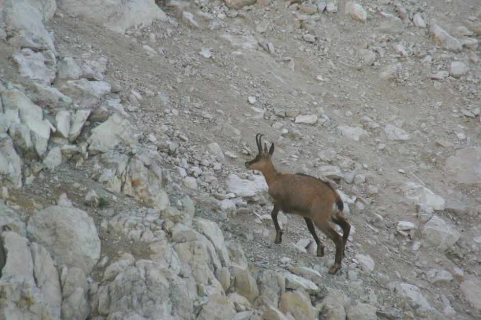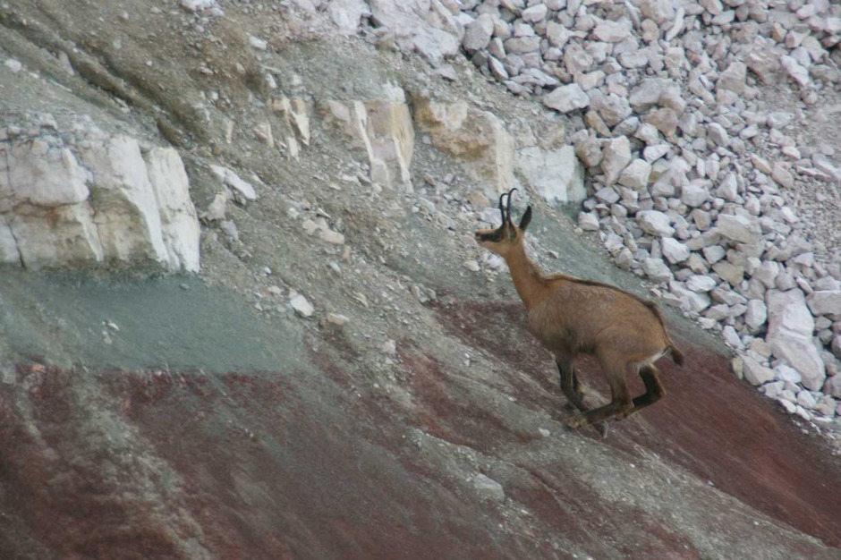 Along the way, we had the chance to see a pack of chamois in search of food among the gravel and rocks on the face of the Rozes peak.