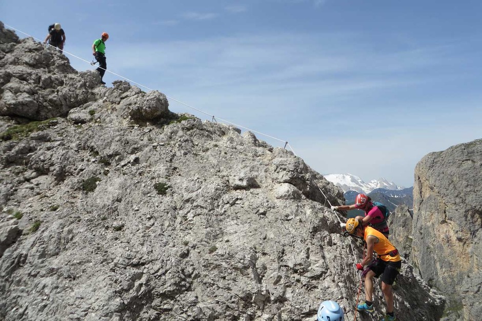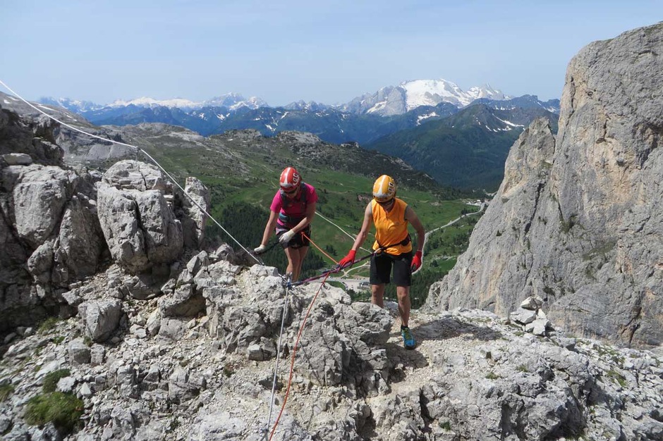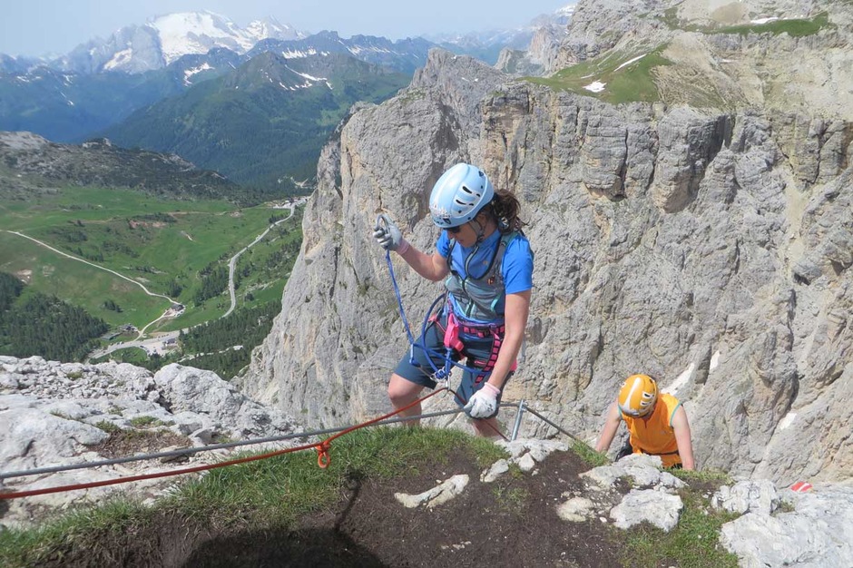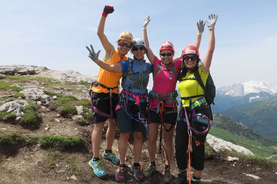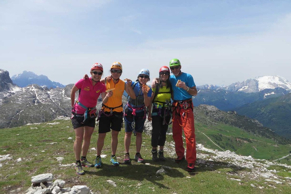 Once we reached the summit, an amazing Dolomites landscape with the Marmolada on the background welcomed our group of climbers, very proud of the accomplishment.