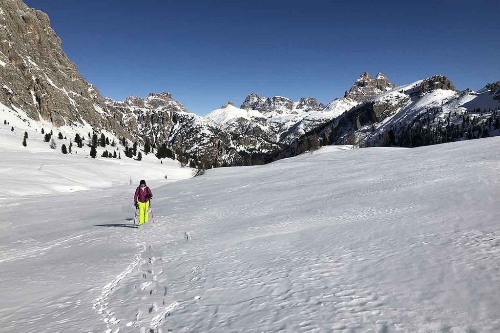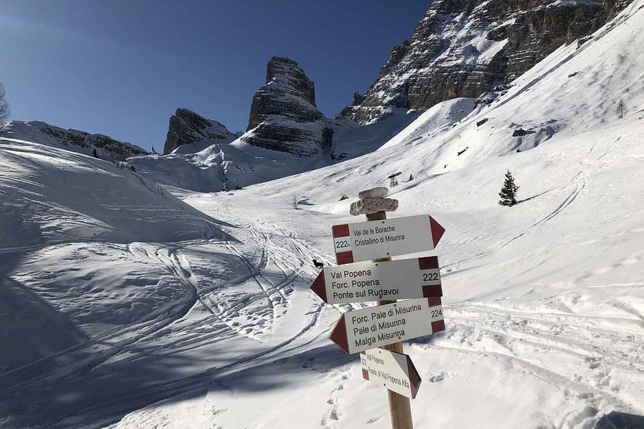 Dal lago di Misurina in auto si imbocca la strada statale che scende verso Carbonin. Arrivati in prossimità di un tornante si lascia la macchine in un piccolo parcheggio. Attraversato un piccolo ponte inizia l’escursione con le ciaspole che sale lungo il torrente Popena.
