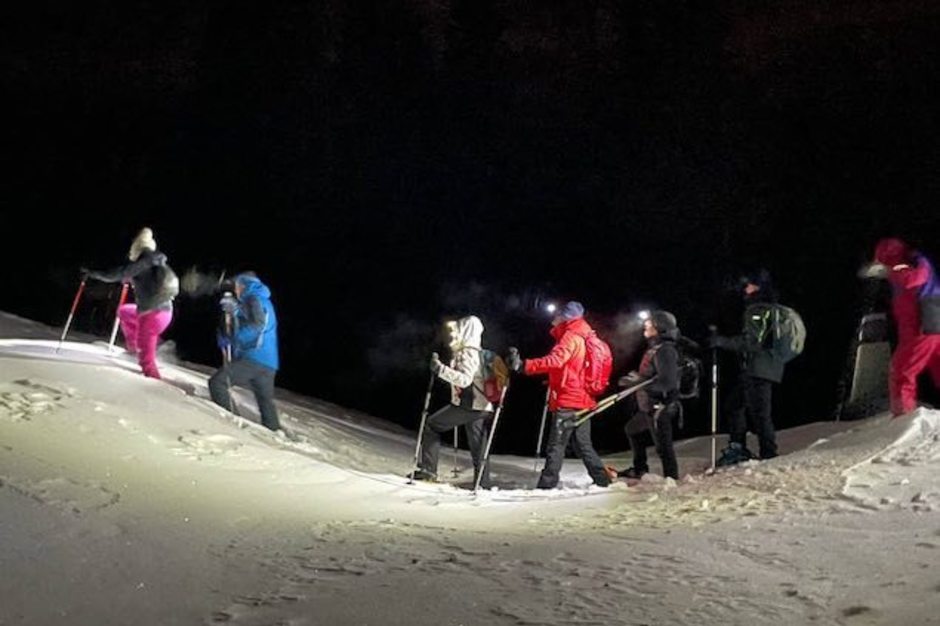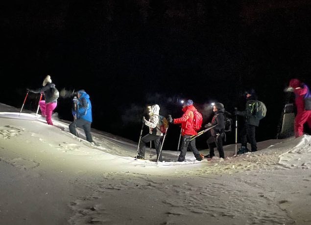 Abbigliamento consigliato: Giacca a vento e piumino, guanti e berretto, scaponcino dopo sci impermeabile e caldo, NO i MOON BOOT, pila frontale. Le ciaspe e i bastoni li forniamo noi.