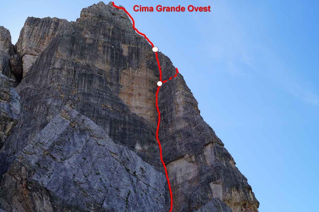 Si sale direttamente il diedro/fessura di 5° oppure dalla nicchia si attraversa a destra su bella placca.