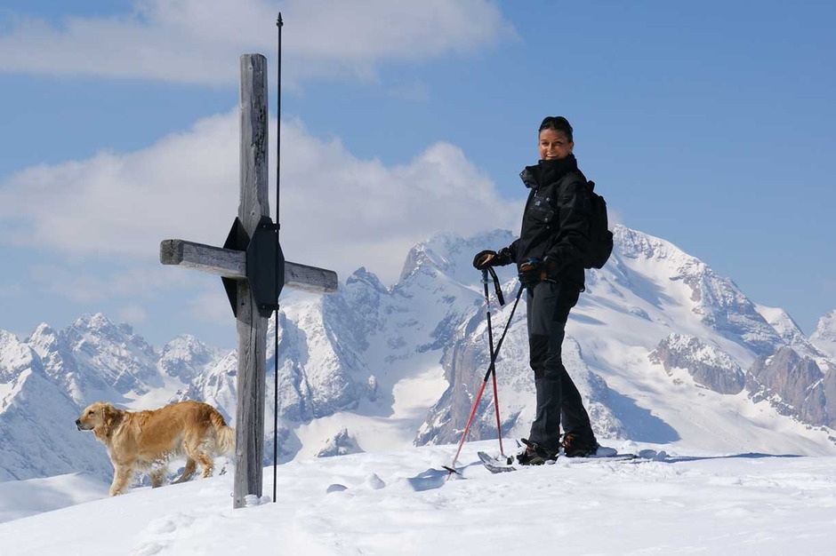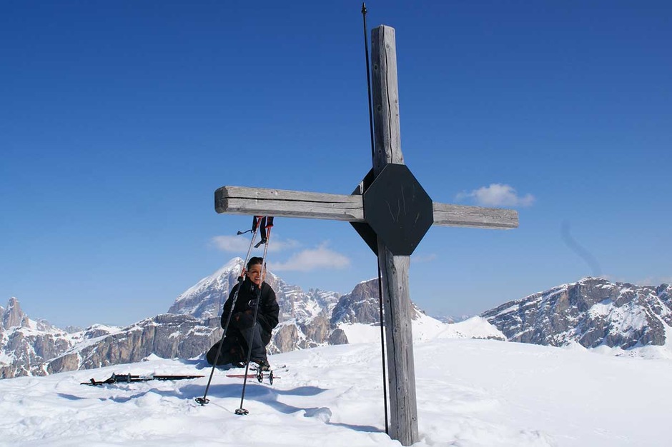 Giunti sulla cima, dove c'è una grande croce, si ammira un panorama a 360 gradi su tutte le Dolomiti.