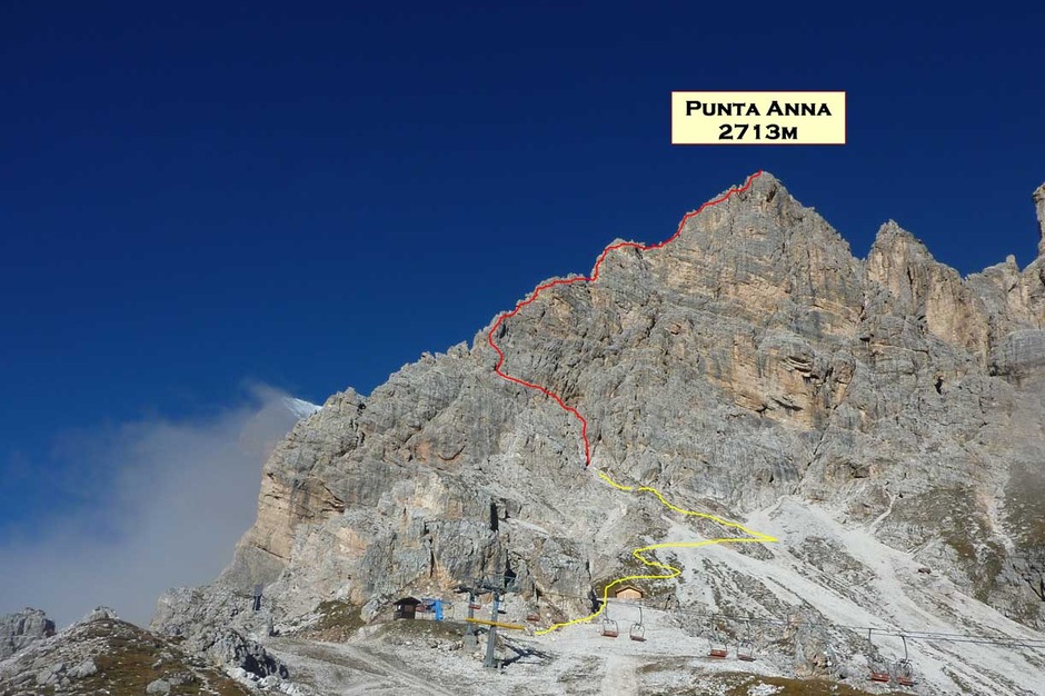 La partenza della ferrata di Punta Anna è raggiungibile dal Rifugio Dibona, dove è possibile parcheggiare l'auto, o dal Rifugio Pomedes servito dagli impianti di risalita delle Tofane.