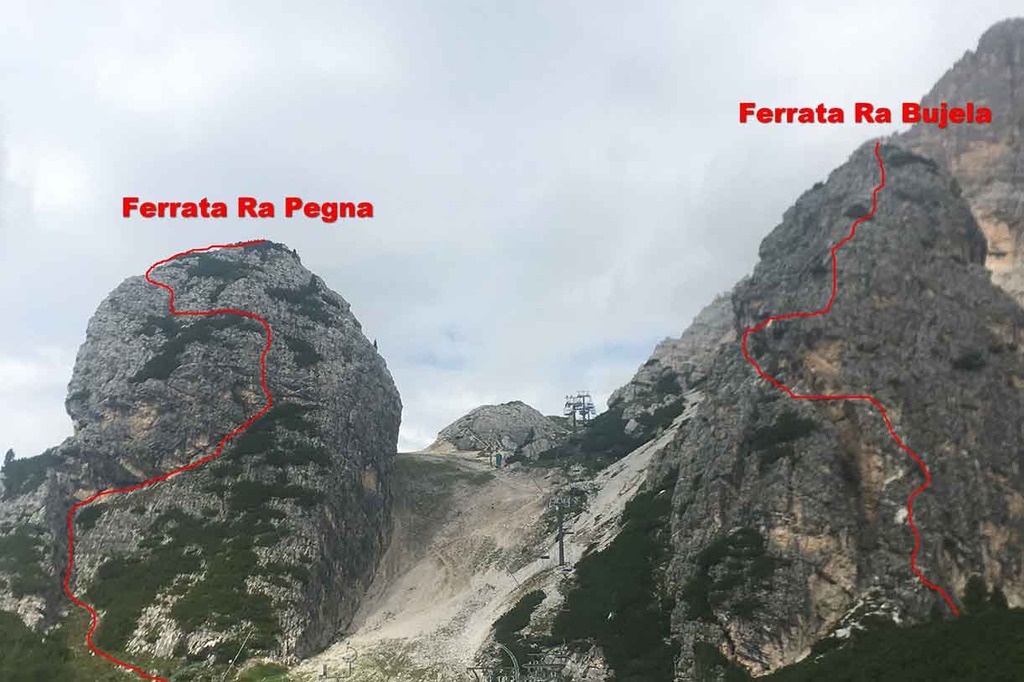Indicazioni sulla via Ferrata Ra Pegna alle Tofane