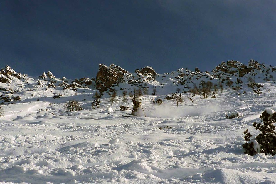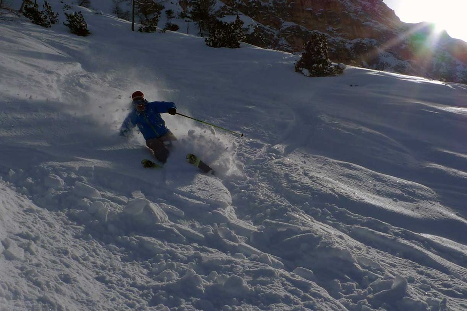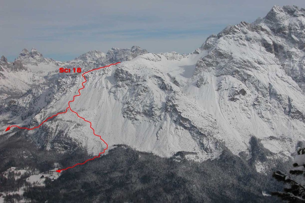 L'itinerario del Freeride Sci 18 parte a monte dello skilift, si scende leggermente lungo la pista, si attraversa verso sinistra e seguendo il bordo della montagna si arriva ad una vecchia costruzione che nel 1993 fu ricostruita per il film Cliffhanger con Sylvester Stallone.