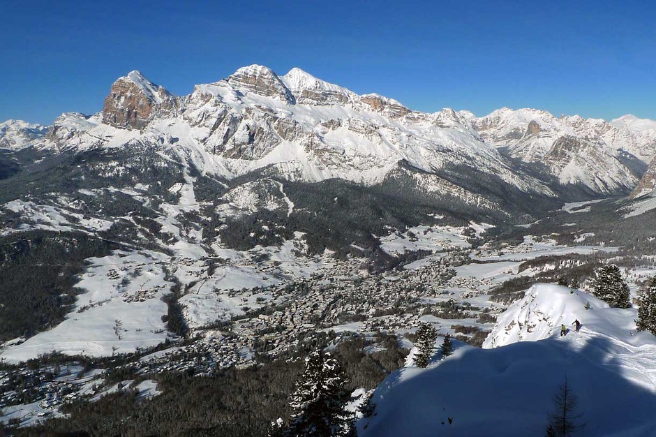 Una seconda alternativa prevede invece di traversare a sinistra quando inizia il bosco, per sciare lungo un bel pendio. Zigzagando in mezzo agli alberi si guadagna una stradina che arriva alla Malga Meneguto, ottimo punto di ristoro per bere una meritata birra, da qui il ritorno a Cortina è tramite taxi.