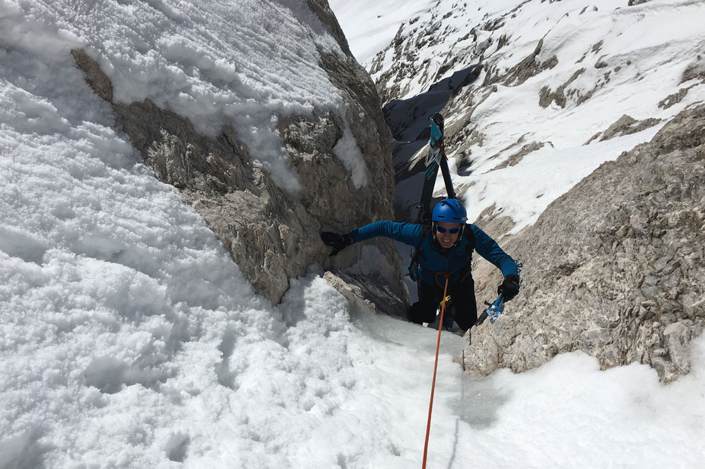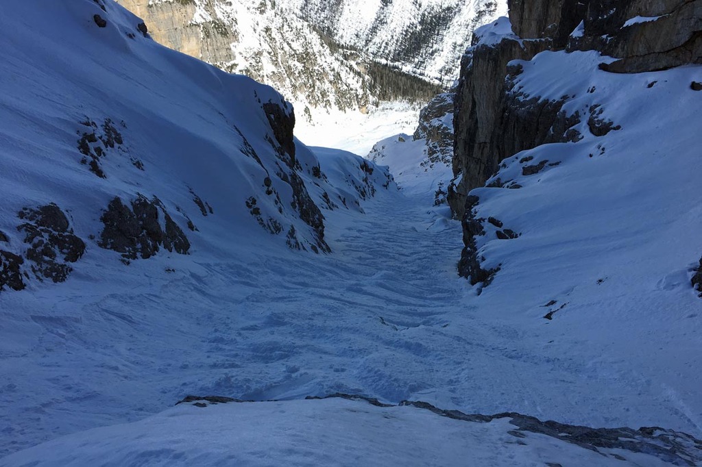 Arrivati verso la fine di questo splendido anfiteatro, sulla destra si intravede un grande e lungo canalone che sale verso la Forcella della Bance che di norma viene salito con ramponi ai piedi. Verso la fine del canale bisogna superare un breve ma tecnico passaggio ghiacciato di 50° gradi.