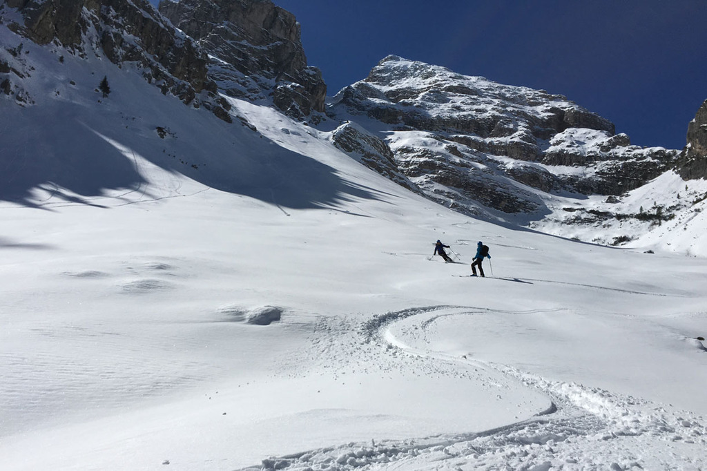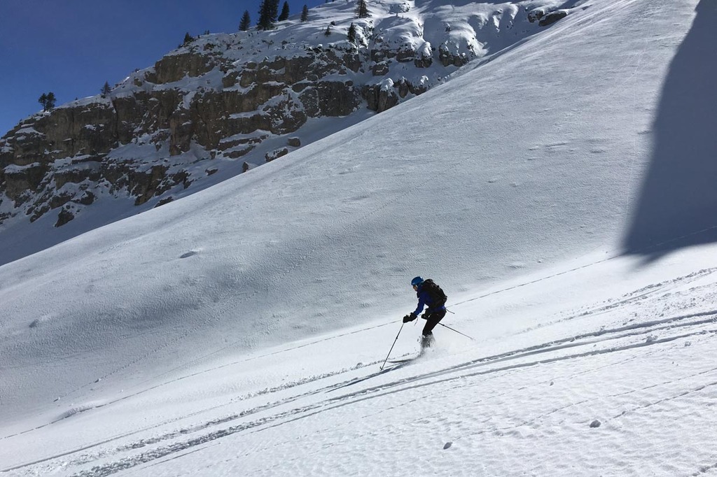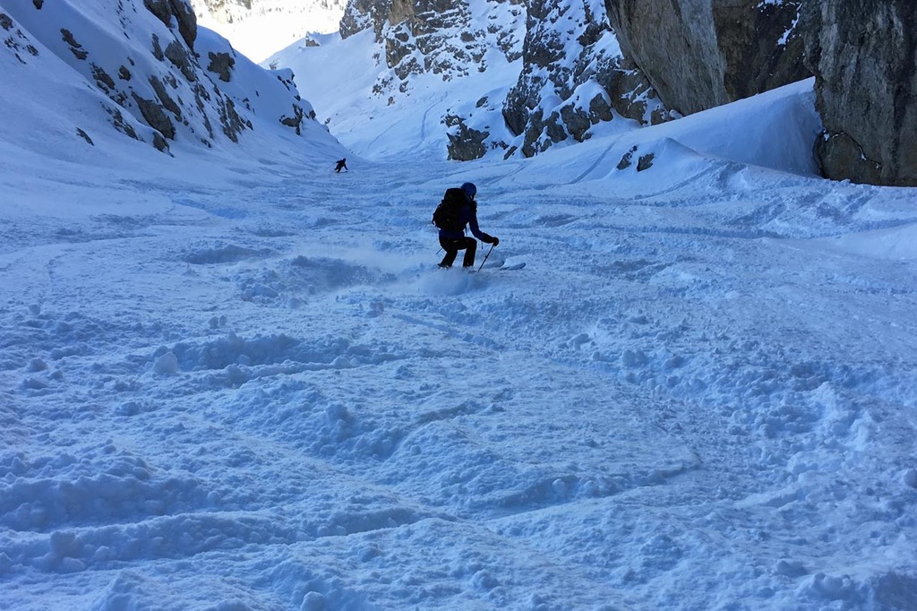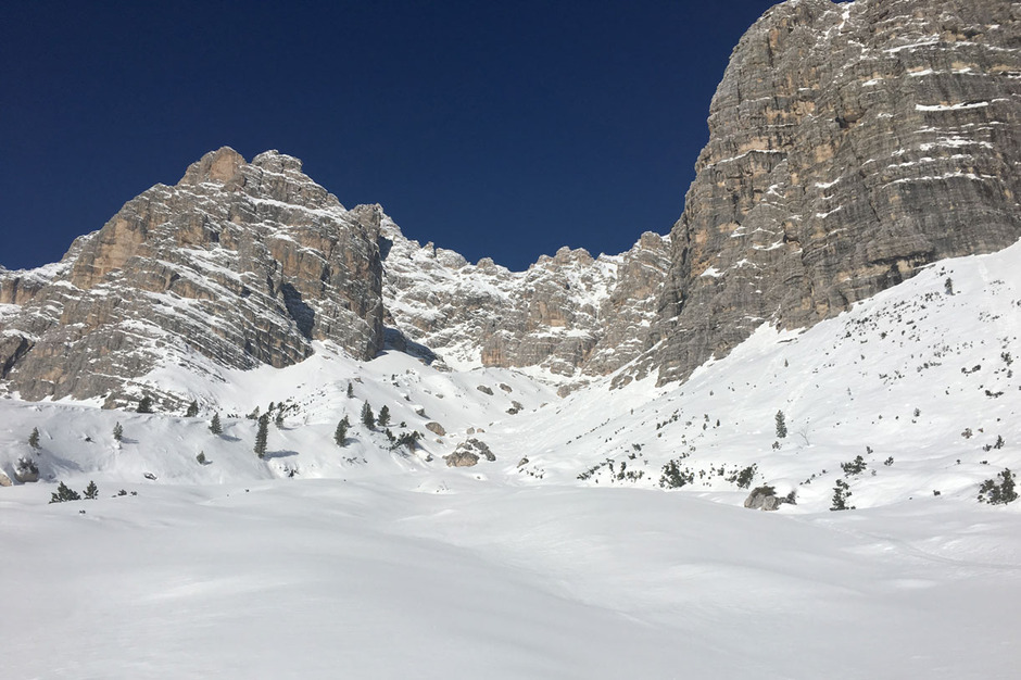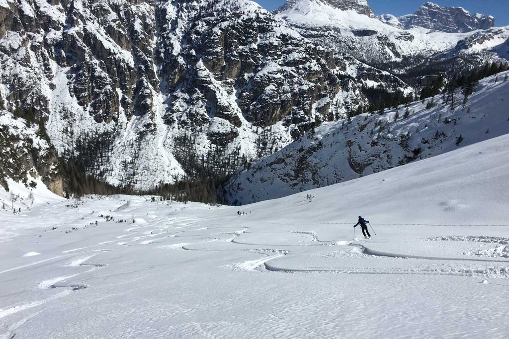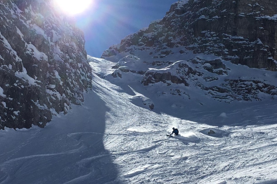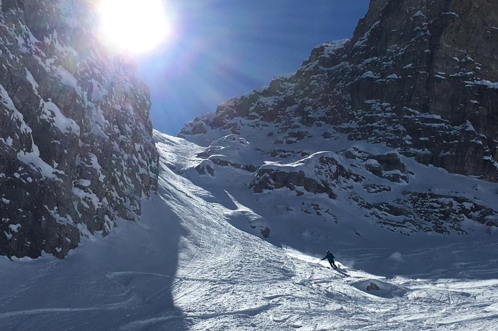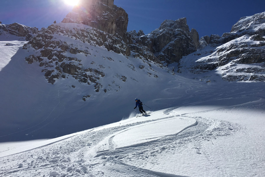 La discesa in sci fuoripista lungo la Val delle Bance, si presenta fin da subito spettacolare con un vallone che scende dritto fino alla fine delle rocce, per poi aprirsi in un grande e ampio pendio che offre delle sciate spettacolari.