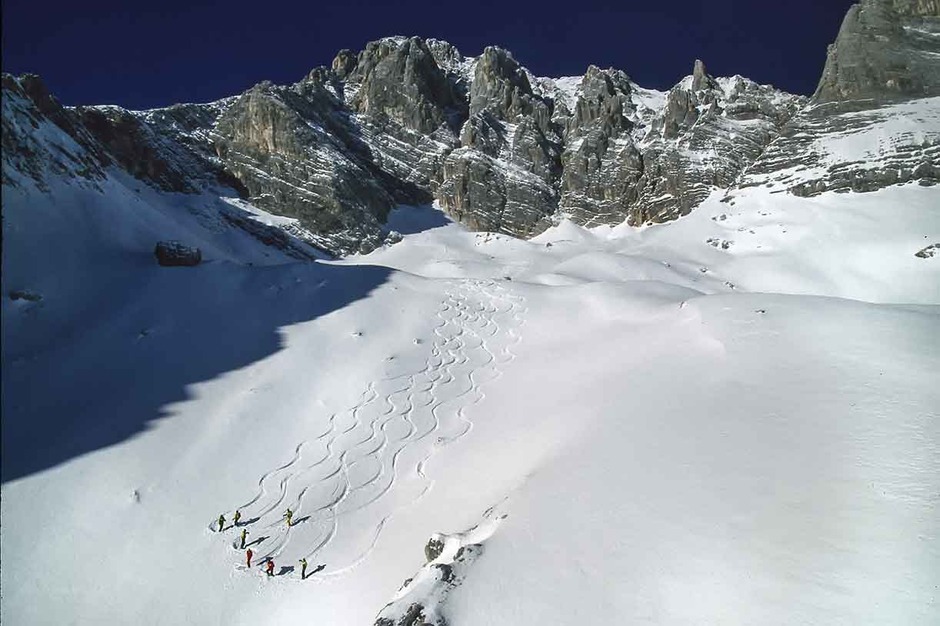 Dolomiti SkiRock propone una settimana sci alpinistica (dal lunedì al venerdì) di alto profilo paesaggistico e naturale alloggiando presso un piccolo ma accogliente hotel situato sotto queste magnifiche montagne da dove partono direttamente quasi tutte le più belle gite sci alpinistiche.
