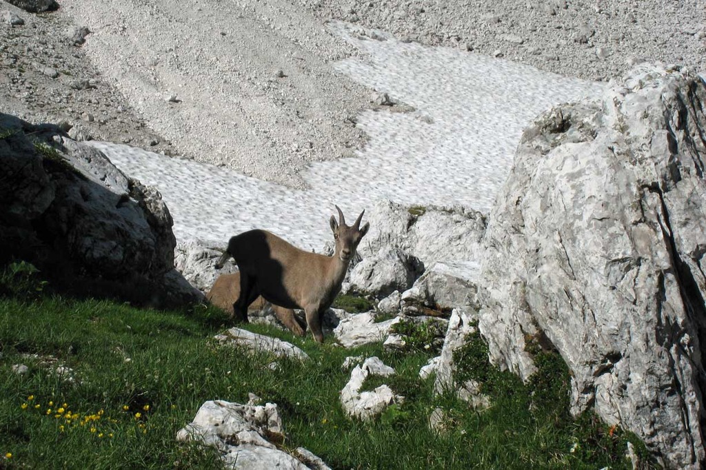 Dal Rifugio Brazzà si scende a Sella Nevea, da qui per sentiero si sale al Rifugio Gilberti 1850 metri.