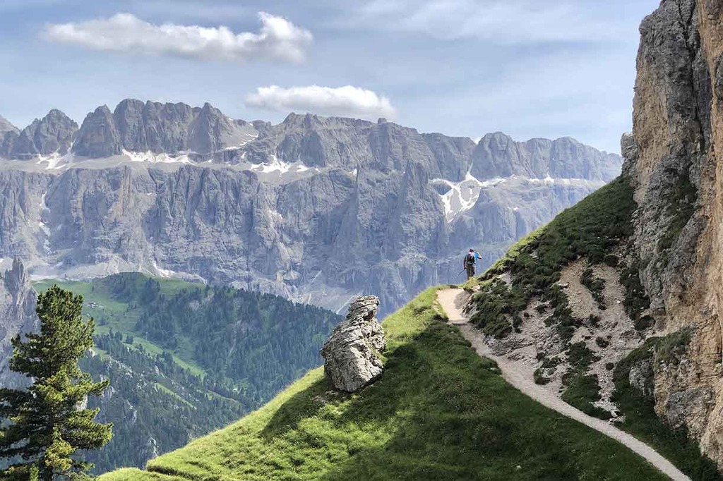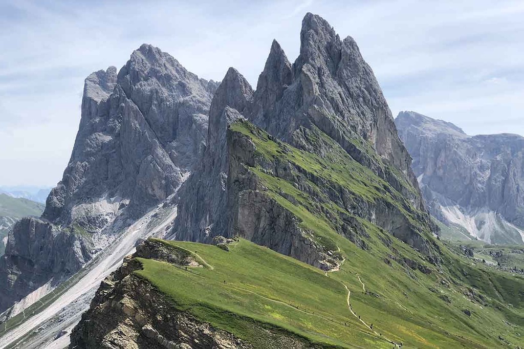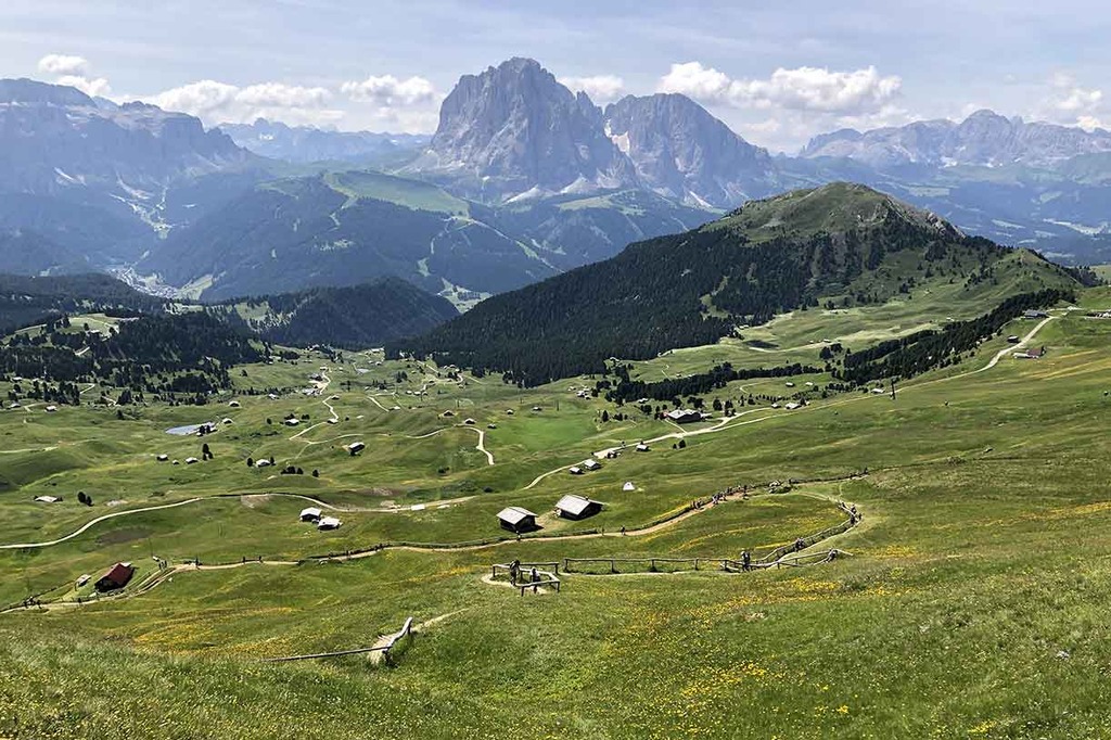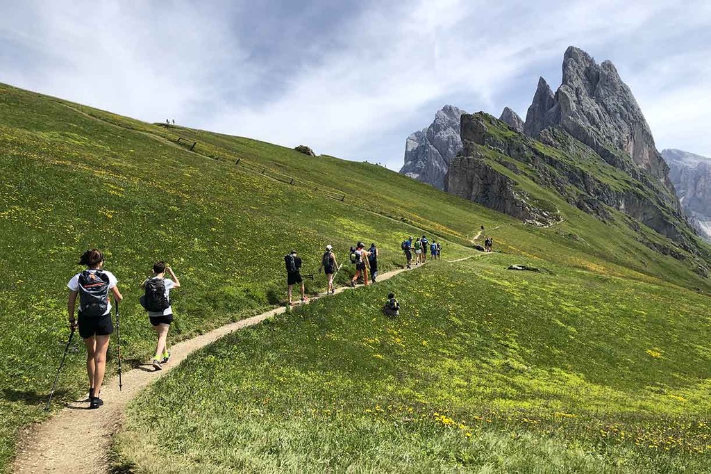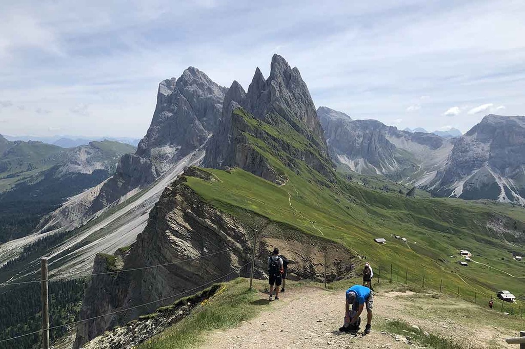 Da Ortisei si prende una veloce funivia che porta al rifugio Seceda a 2500 metri, da dove parte il trekking. Il sentiero parte dolce e piacevole lungo grandi praterie di alta quota costellate da innumerevoli tipi di fiori.